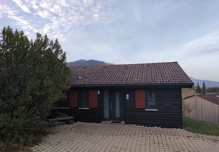 Das Haus liegt sehr schön auf einem großen Grundstück im oberen, etwas ansteigenden Bereich des Feriendorfes Reichenbach. Von der ruhigen, sonnigen Terrasse hat man einen sehr schönen Blick zur Alpspitze und bis zum Grünten.