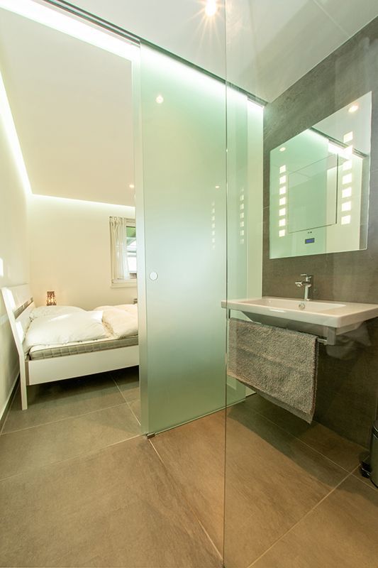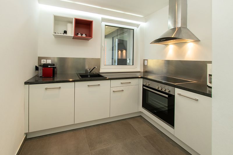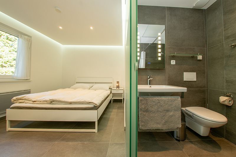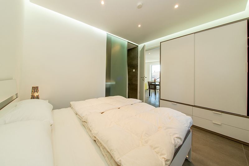 Der große Wohnraum mit Küche, zwei Schlafzimmern mit integrierten Bädern, Vorraum mit Abstellkammer, eine großer Wintergarten sowie 2 PKW-Stellplätze bieten 4 Personen bequem Platz.