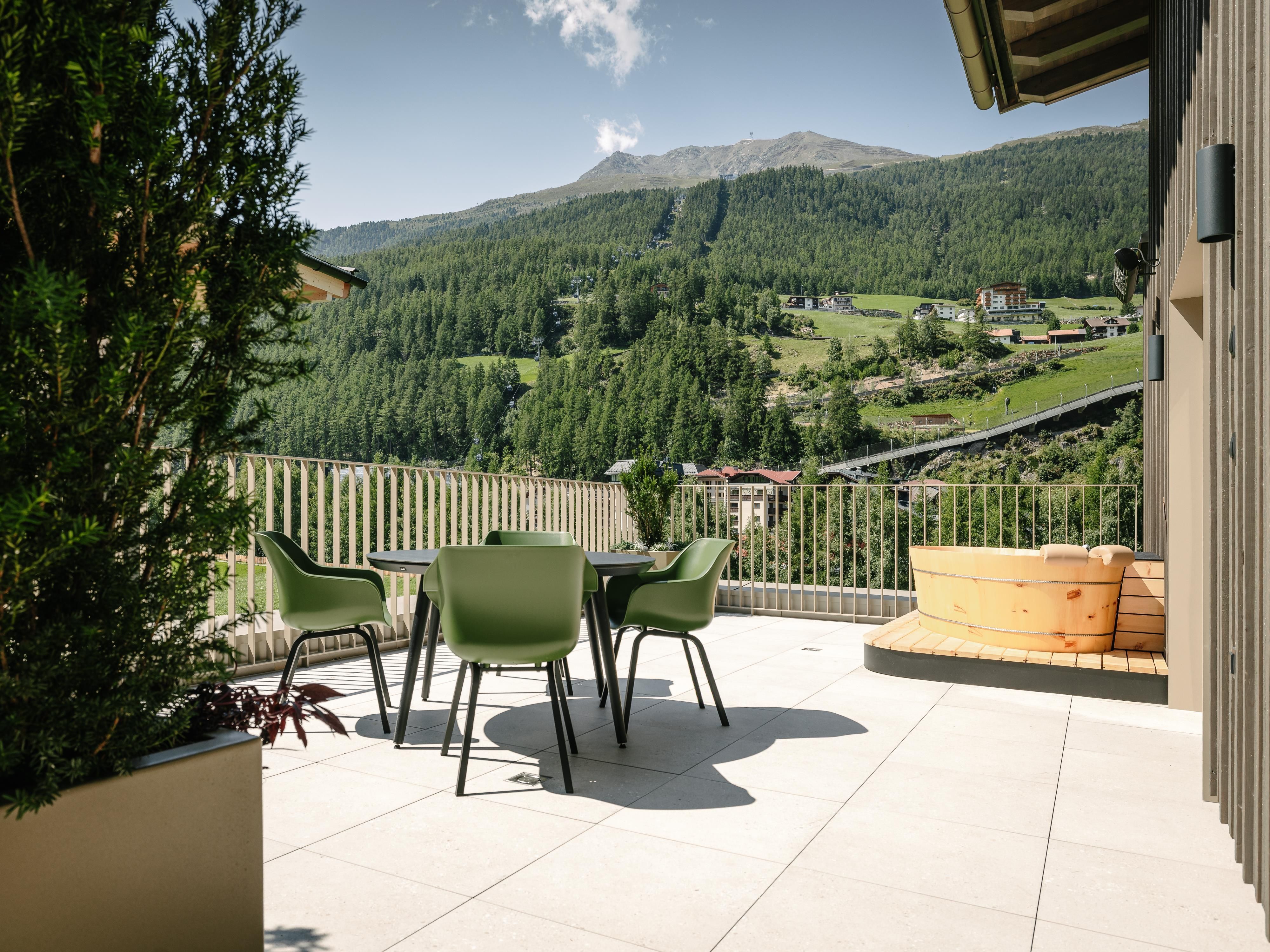 NEU ab Juli 2025: Vier brandneue, design Appartements und eine Penthouse in sonniger, ruhiger Lage, unweit der Gaislachkoglbahn und Geschäften. Das Highlight der Einheiten sind die Outdoor-Badewannen mit Bergblick. Die Wohnungen sind mit Balkon und hochwertig ausgestattet. Für gesundheitsbewusste verfügt jede Wohnung über eine Sprossenwand und Yogamatten. Das Penthouse bietet einen eigene Sauna.