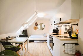 Unser modernes Studio Apartment bietet alles, was Sie für einen komfortablen Aufenthalt benötigen. Die stilvolle Einrichtung sorgt für eine angenehme Atmosphäre, während das bequeme Doppelbett für erholsame Nächte sorgt. Die voll ausgestattete Küche ermöglicht es Ihnen, sich selbst zu versorgen, mit einem Herd, Backofen, Geschirrspüler und einer Kaffeemaschine. Das helle Badezimmer ist mit einer Dusche, einem Einzelwaschtisch und einem Waschtrockner ausgestattet. Zusätzlich stehen Ihnen schnelles WLAN und ein Smart-TV zur Verfügung, sodass Sie sowohl für Arbeit als auch für Unterhaltung bestens ausgestattet sind. Das Apartment bietet somit einen idealen Rückzugsort für Paare, Geschäftsreisende oder Alleinreisende, die eine komfortable und gut gelegene Unterkunft in Graz suchen.