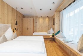 Mountain Suite Nr 103, 4-Zimmer-Wohnung 82 m2, im erhöhten Erdgeschoss. Geschmackvoll und mit viel Holz eingerichtet: Wohn-/Esszimmer mit Essecke, Küchenblock, Sat-TV und Internationale TV-Sender (Flachbildschirm). Ausgang zum Balkon. 2 Doppelzimmer. Ausgang zum Balkon. 1 Zimmer mit 1 Bett, 1 Doppelbett, Sat-TV und Internationale TV-Sender (Flachbildschirm). Ausgang zum Balkon. Offene Küche (Geschirrspüler, 4 Glaskeramikplatten, Toaster, Wasserkocher, Mikrowelle, elektrische Kaffeemaschine, Kapseln für die Kaffeemaschine (Nespresso) extra). Dusche, Dusche/WC, sep. WC. Fussbodenheizung. Holzdielenboden. 2 Balkone. Balkonmöbel. Sehr schöne Panoramasicht auf die Berge und die Ortschaft. Zur Verfügung: Safe, Haartrockner. Internet (WLAN, gratis). Garage (1 Auto). E-Ladestation. Bitte beachten: Nichtraucher-Unterkunft. Allergikergeeignet. Flexibilität bei der Bettenaufteilung: Es stehen mehr Schlafmöglichkeiten zur Verfügung als die maximal zugelassene Personenzahl, diese darf dennoch nicht überschritten werden. 50411-008165-2024