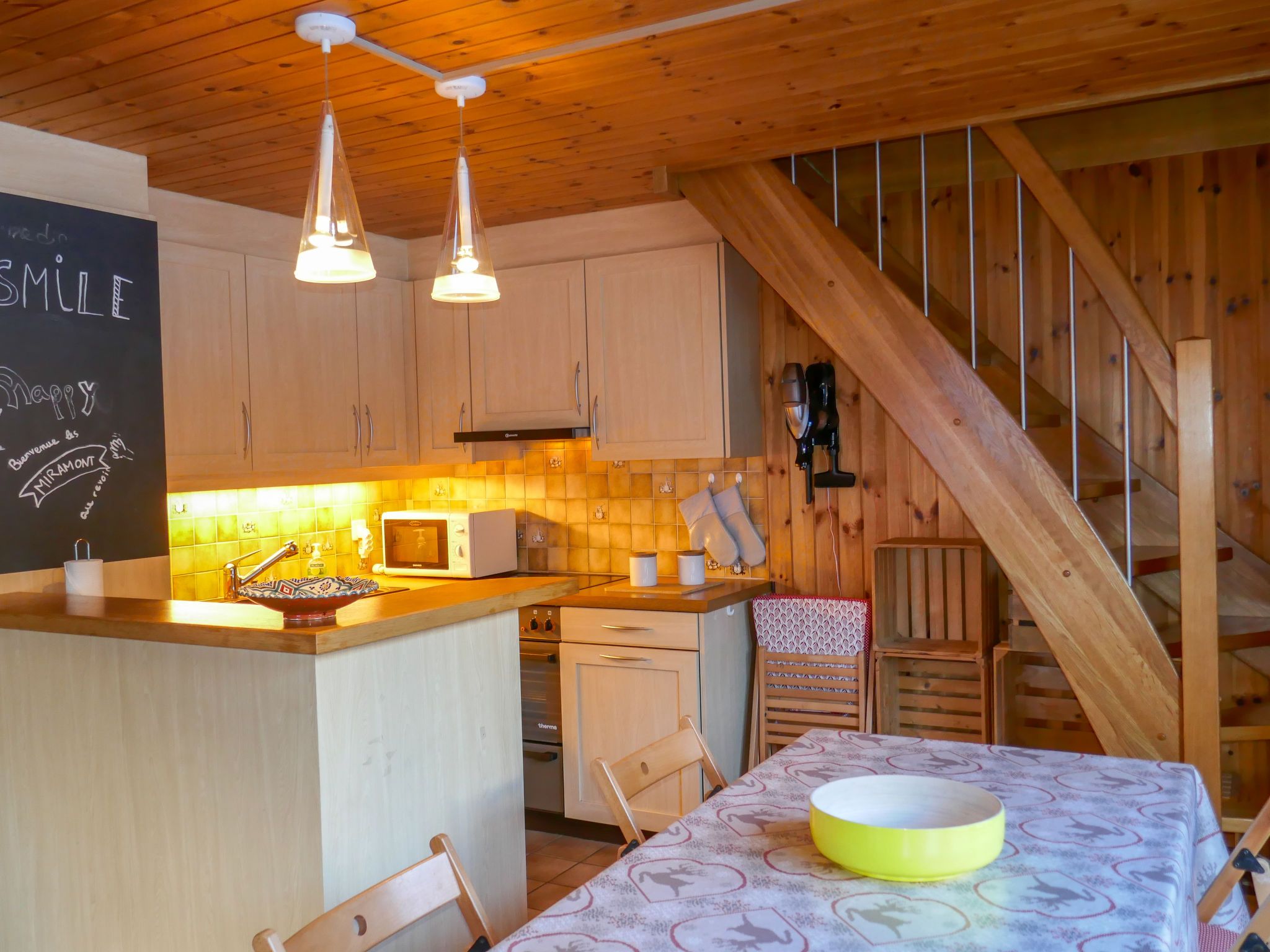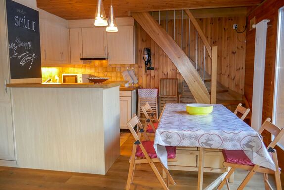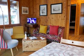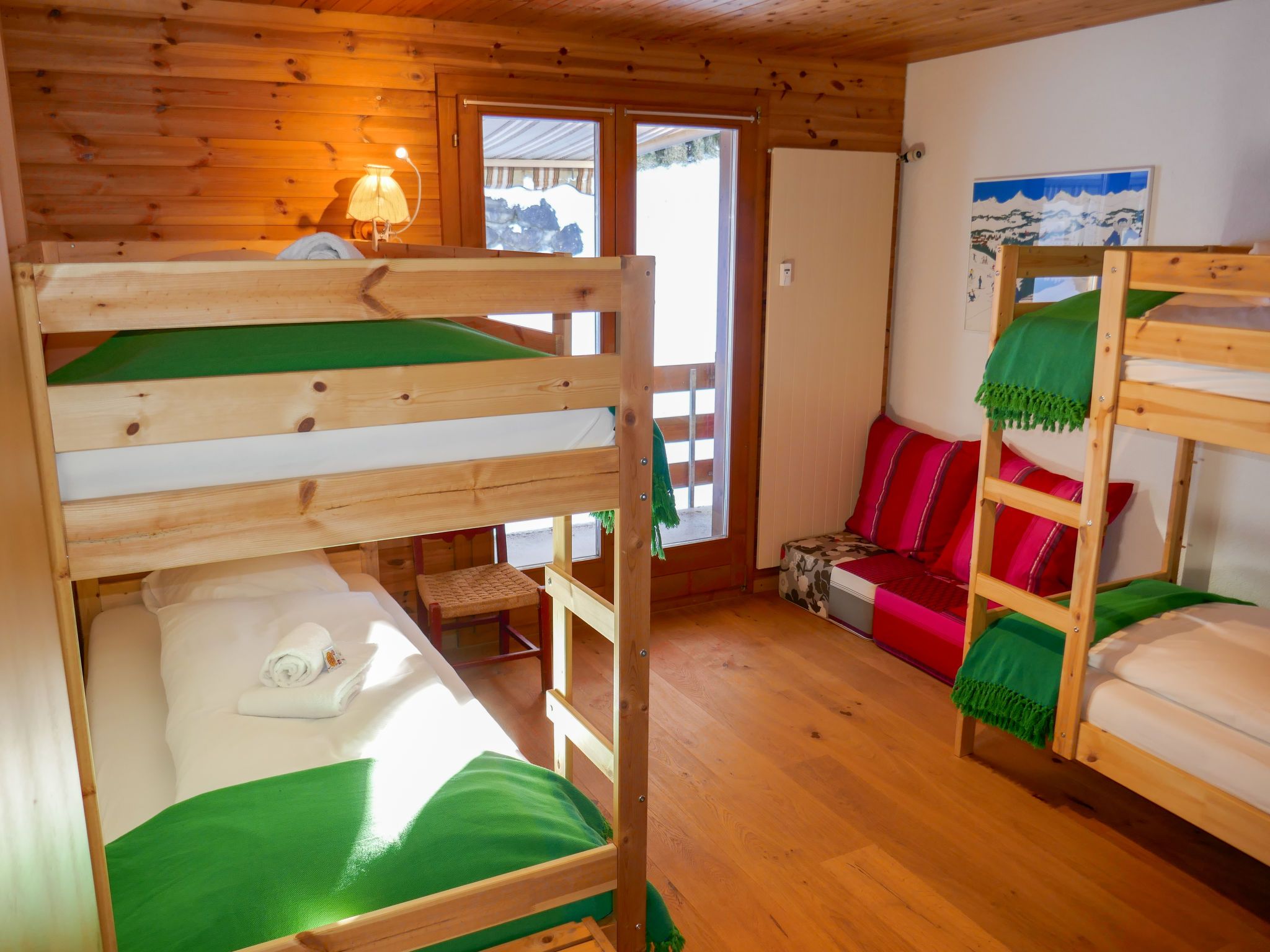 Réan, 3-Zimmer-Wohnung 50 m2 auf 2 Stockwerken, im Dachgeschoss. Objekt geeignet für 2 Erwachsene + 2 Kinder. Hell, teilweise abgeschrägt, teilweise renoviert im Jahre 2025, zweckmässig und gemütlich eingerichtet: offenes Wohn-/Esszimmer mit Schwedenofen, Esstisch und Kabel-TV. Ausgang zum Balkon. 1 Zimmer mit 1 Doppelbett (160 cm, Länge 200 cm). Ausgang zum Balkon. 1 Kinderzimmer, 2 Etagenbetten (90 cm, Länge 200 cm). Ausgang zum Balkon. Offene Küche (4 Kochplatten, Backofen, Geschirrspüler, 4 Glaskeramikplatten, Toaster, Wasserkocher, Mikrowelle, elektrische Kaffeemaschine, Kapseln für die Kaffeemaschine (Nespresso) extra, Racletteofen, Fondue Set (Käse)). Dusche/WC. Obergeschoss: (steile Treppe) abgeschrägtes, offenes Spielzimmer. Balkon, Südlage Balkon, Nordlage. Balkonmöbel. Herrliche Panoramasicht auf das Tal, die Ortschaft und Wetterhorn. Zur Verfügung: Internet (Wireless LAN, gratis). Parkplatz Nr. Réan beim Haus. Bitte beachten: Nichtraucher-Unterkunft. Eigener Eingang.