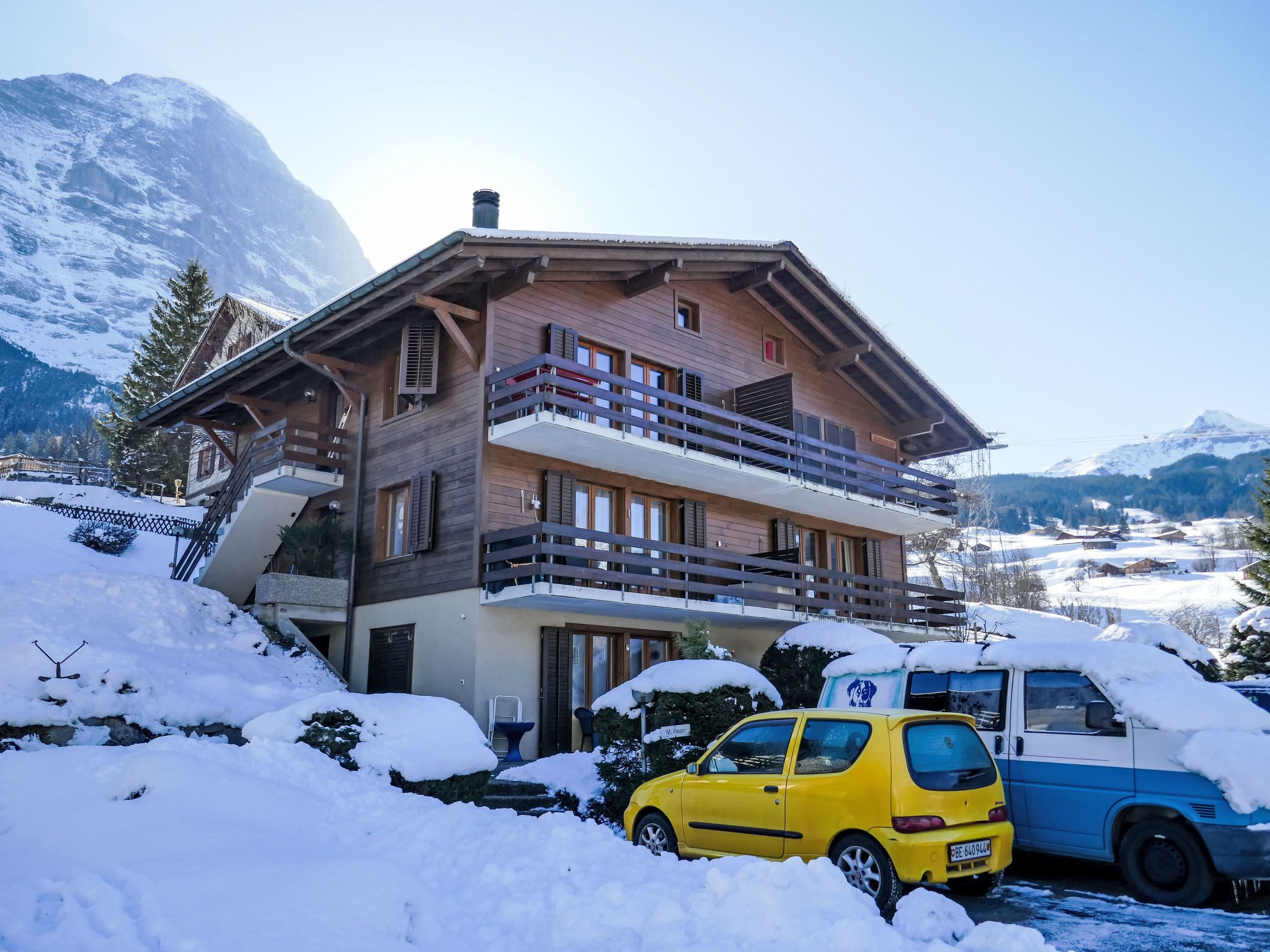 Am Fusse des Eigers, freistehendes, einfaches Mehrfamilienhaus Nordwestwand, auf 3 Stockwerken. Im Ortsteil Zu Trogen, 2.1 km vom Zentrum, ruhige Lage am Hang, 200 m vom Skigebiet, in einer Sackgasse. Im Hause: Skiraum, Zentralheizung. Steile Zufahrt bis zum Haus. Im Winter bitte Schneeketten mitbringen. Treppenweg (25 Stufen) bis zum Haus. Parkplatz beim Haus. Lebensmittelgeschäft 1 km, Einkaufszentrum 2.1 km, Restaurant 300 m, Fahrradverleih 900 m, Bushaltestelle Rothenegg 1.3 km, Bahnstation Grund 800 m, Freibad 900 m, Hallenbad 2.1 km. Golfplatz (9 Loch) 2 km, Tennis 2.3 km, Minigolf 2.2 km, Sportzentrum 2.1 km, Wanderwege ab Haus 10 m, Bergeisenbahn 600 m, Gondelbahn 800 m, Skipisten 200 m, Skibushaltestelle 100 m, Langlaufloipe 800 m, Kinderspielplatz 2.1 km. Bekannte Seen in der Umgebung sind gut erreichbar: Thuner-/Brienzersee 18 km. Bitte beachten: Fahrzeug empfohlen, kein Fahrstuhl vorhanden. Bei guter Schneelage Zufahrt mit den Skiern bis zum Haus.
