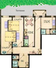 - Studio mit MultiMediaplayer und zusätzlicher Couche mit zwei Schlafplätze