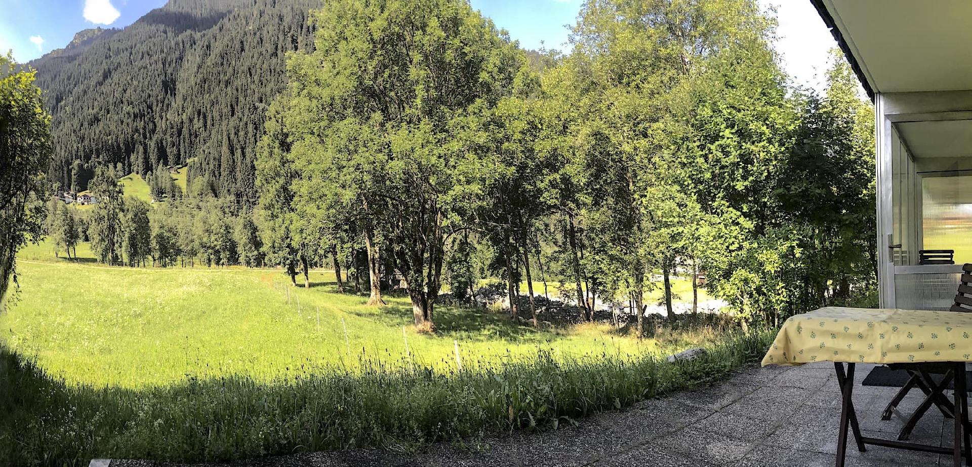 liegt in ruhiger Lage an einer grosse Wiese mit Bachlauf und Auen nebenan