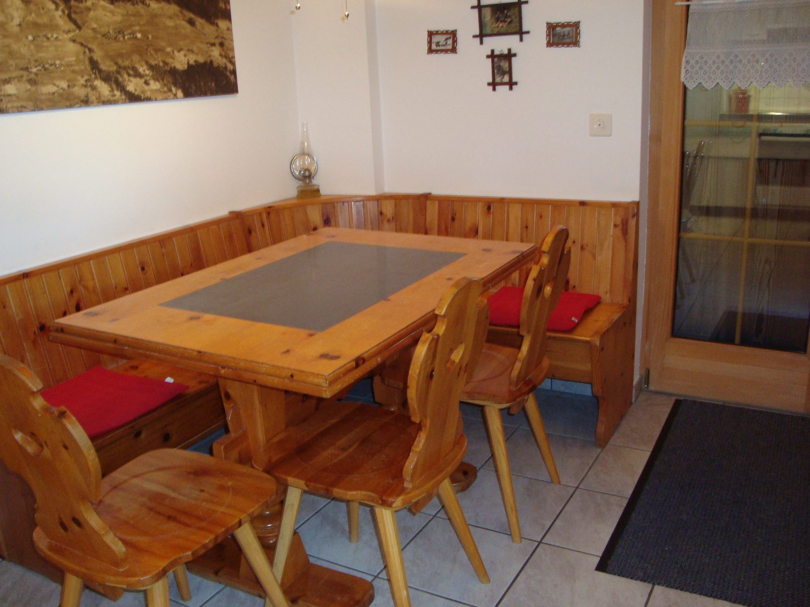 Separates Wohnzimmer mit Polstergruppe für 6 Personen, ein Esstisch mit 4-5 Stühlen. Satelit TV und Stereoanlage. Specksteinofen.Küche: