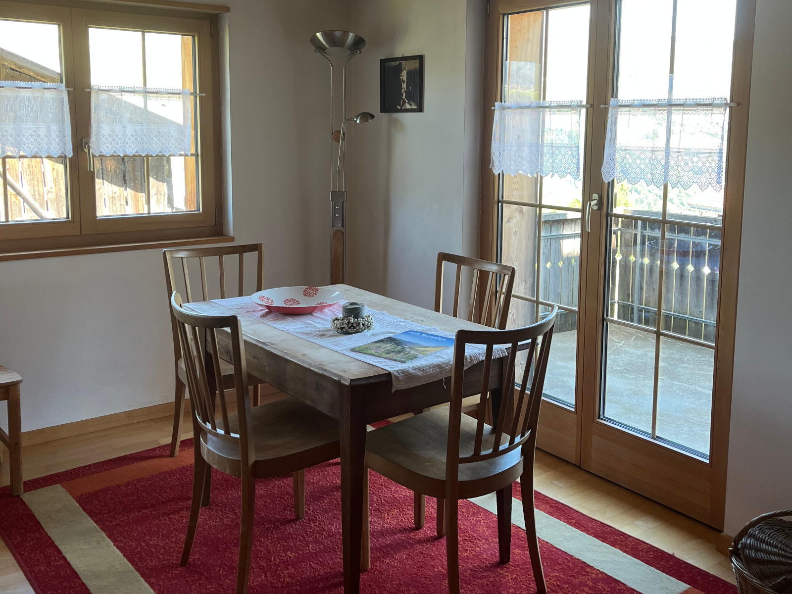 4 Schlafräume, Babyhochstuhl, Backofen, Balkon, Fondue-Set, Garten, Geschirrspüler, Grillmöglichkeit, Haustiere nicht erlaubt, Kachelofen, Kaffeemaschine, Küche, Küche separat, Küchenwäsche, Kühlschrank, Nichtraucherzimmer-/wohnung, Parking, Raclette-Set, Radio, Schlafcouch, Terrasse, Tisch- und Küchenwäsche, Töpfe Pfannen Geschirr, TV, Wäschetrockner, Wäschetrockner im Haus, Waschmaschine, Waschmaschine im Haus, Wasserkocher