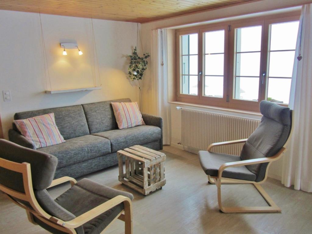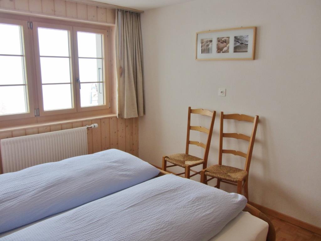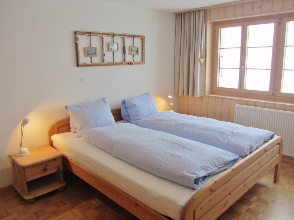 2-Zimmerwohnung im Parterre (47m2). Haus mit 3 Wohnungen. 1 Schlafzimmer mit 1 Doppelbett, Kinderbett vorhanden. Grosses Wohnzimmer mit zwei Betten. Dusche/WC, TV, CD-Player, Internet, Terrasse, Garten zur Mitbenützung, Grill, Spielplatz, Parkplatz. Haustiere sind nicht erlaubt.