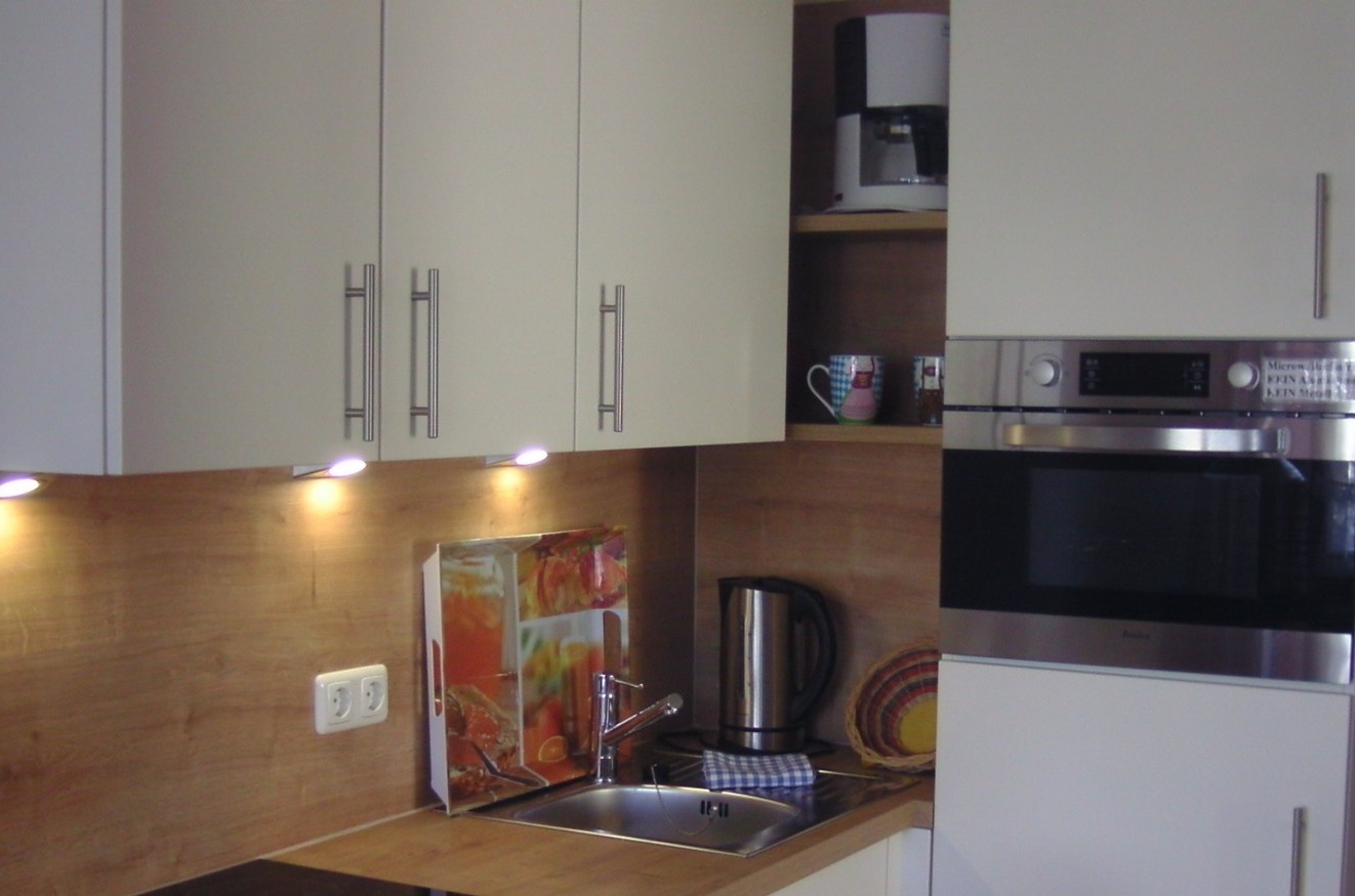 unser Wolkenlos verfügt über ein Wohn/Schlafzimmer, Flachbildschirm, C, neue Küche in Magnolie mit Backofen, Mikrowelle etc mit Essgruppe extra mit 3. Bett, Erlebnisdusche, WC und Südterrasse mit Zugang zum Garten Allergiker