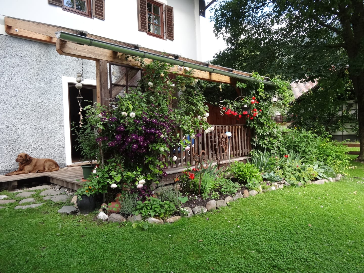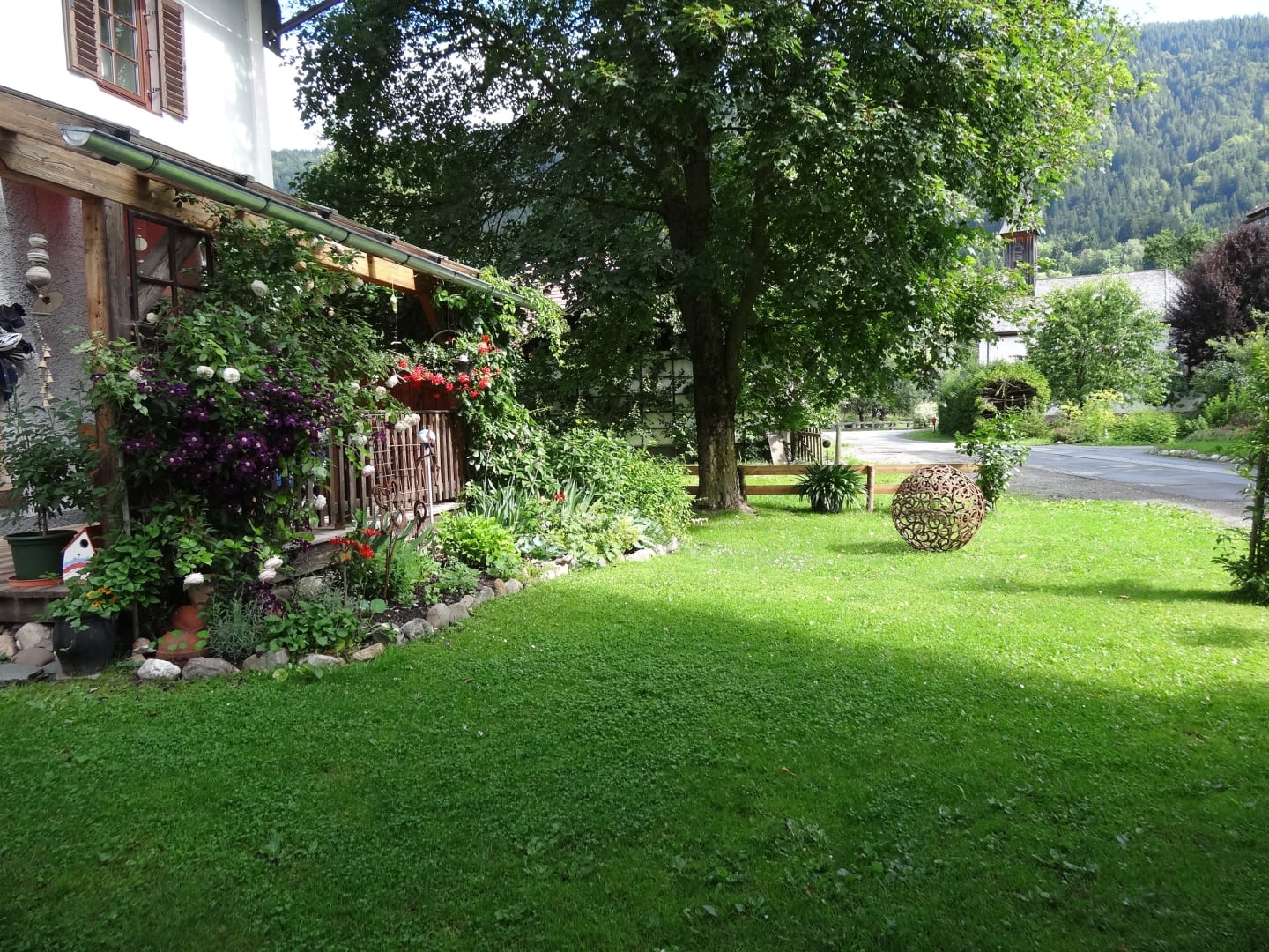 Im Garten gibt es viele gemütliche Ecken und Nischen und einen eigenen Bereich zu frühstücken oder zu grillen.