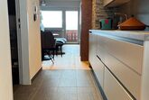 Mit Küchenzeile samt Geschirrspüler, Kühlschrank, Backrohr, Herd; ein hochwertiges Sofa - Bett (elektrisch verstellbar); Balkon mit Bergblick, Terrasse mit Südwest-Ausrichtung und einzigartigem Inntalblick, vollautomatische Jalousien; Dusche und WC
