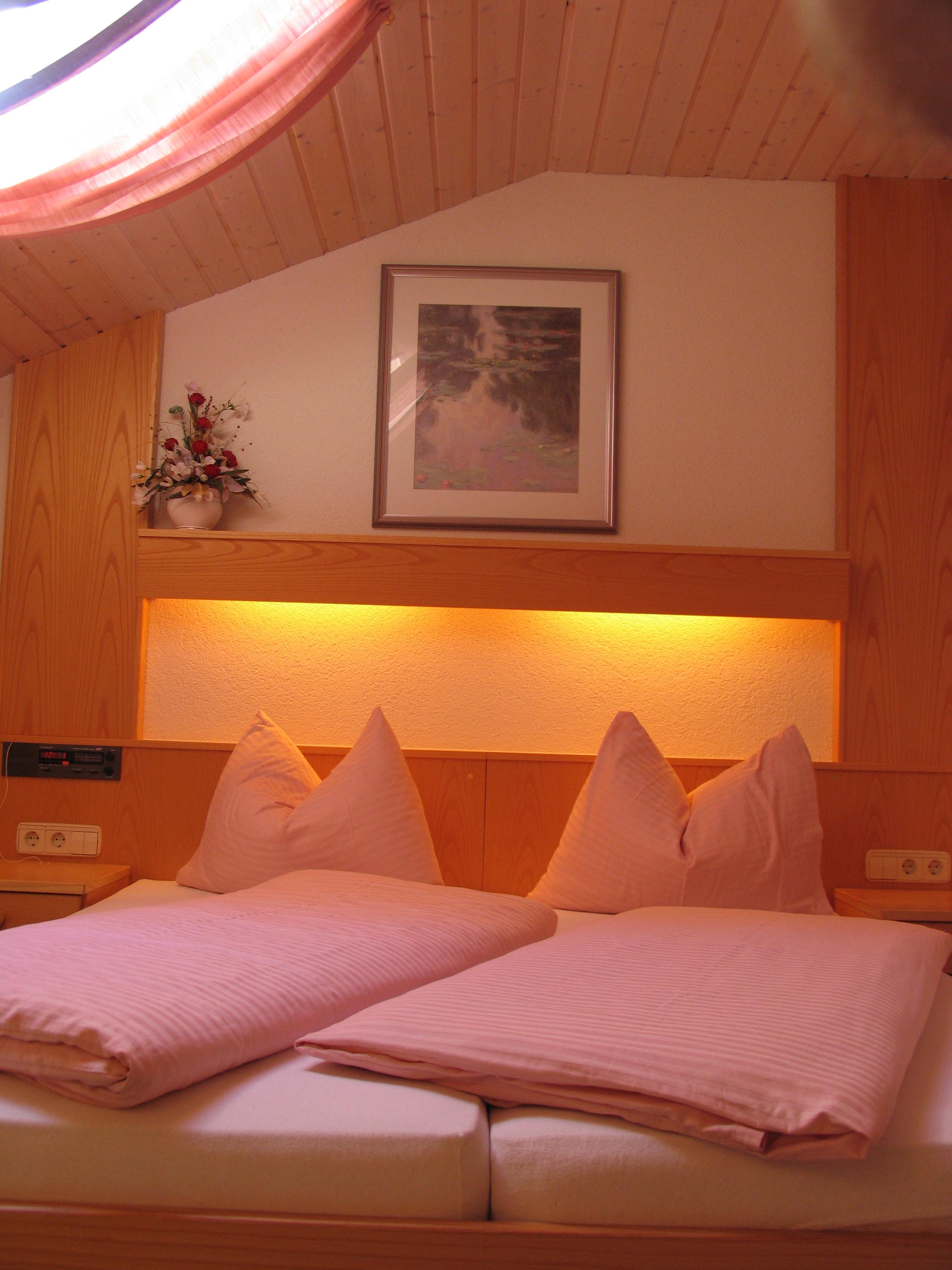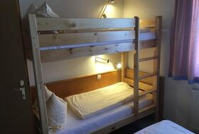 Schlafzimmer mit Doppelbett, Stockbett, Bettwäsche