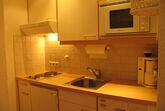 Vorraum mit eingerichteter Küche: Geschirr, Mikrowellenherd, Geschirrspüler, Kaffeemaschine, Wasserheizer, Staubsauger..