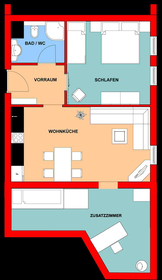 - Wohn/Schlafraum kombi.