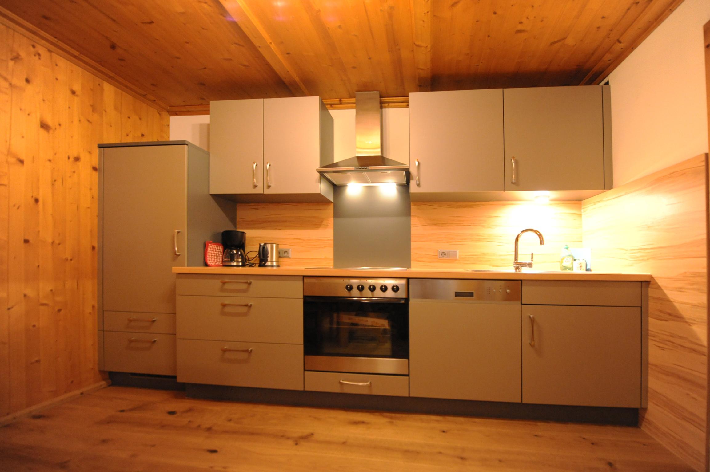großzügig ausgestattete Küchenzeile, gemütlich eingerichtete Wohnküche für einen entspannten Urlaub