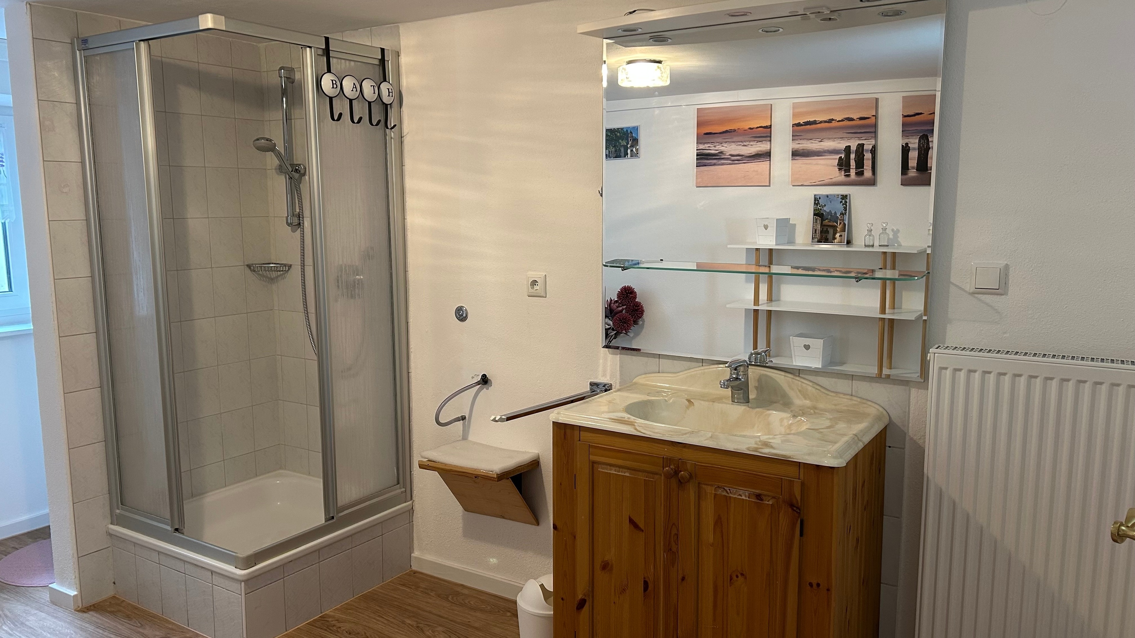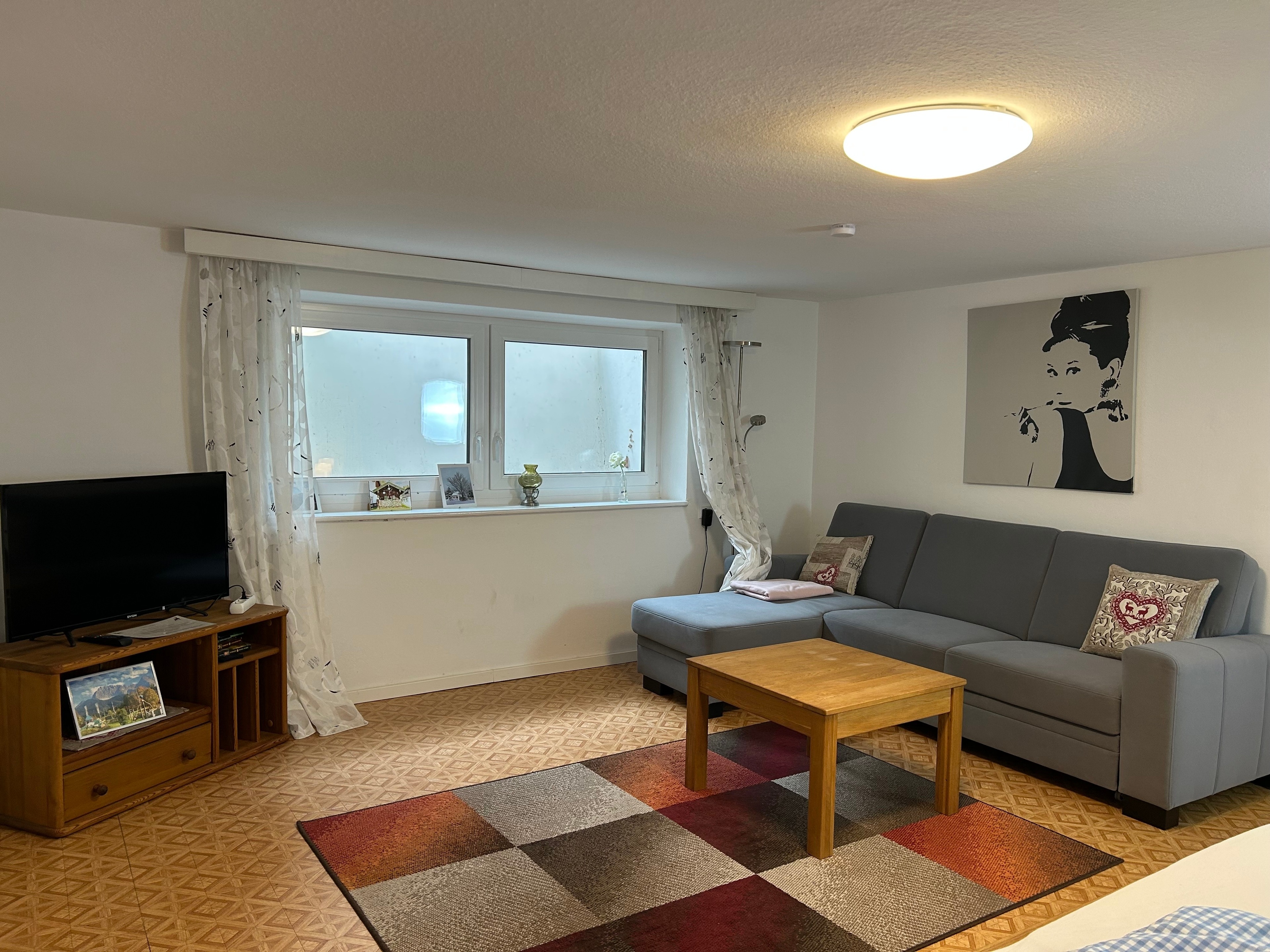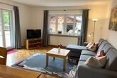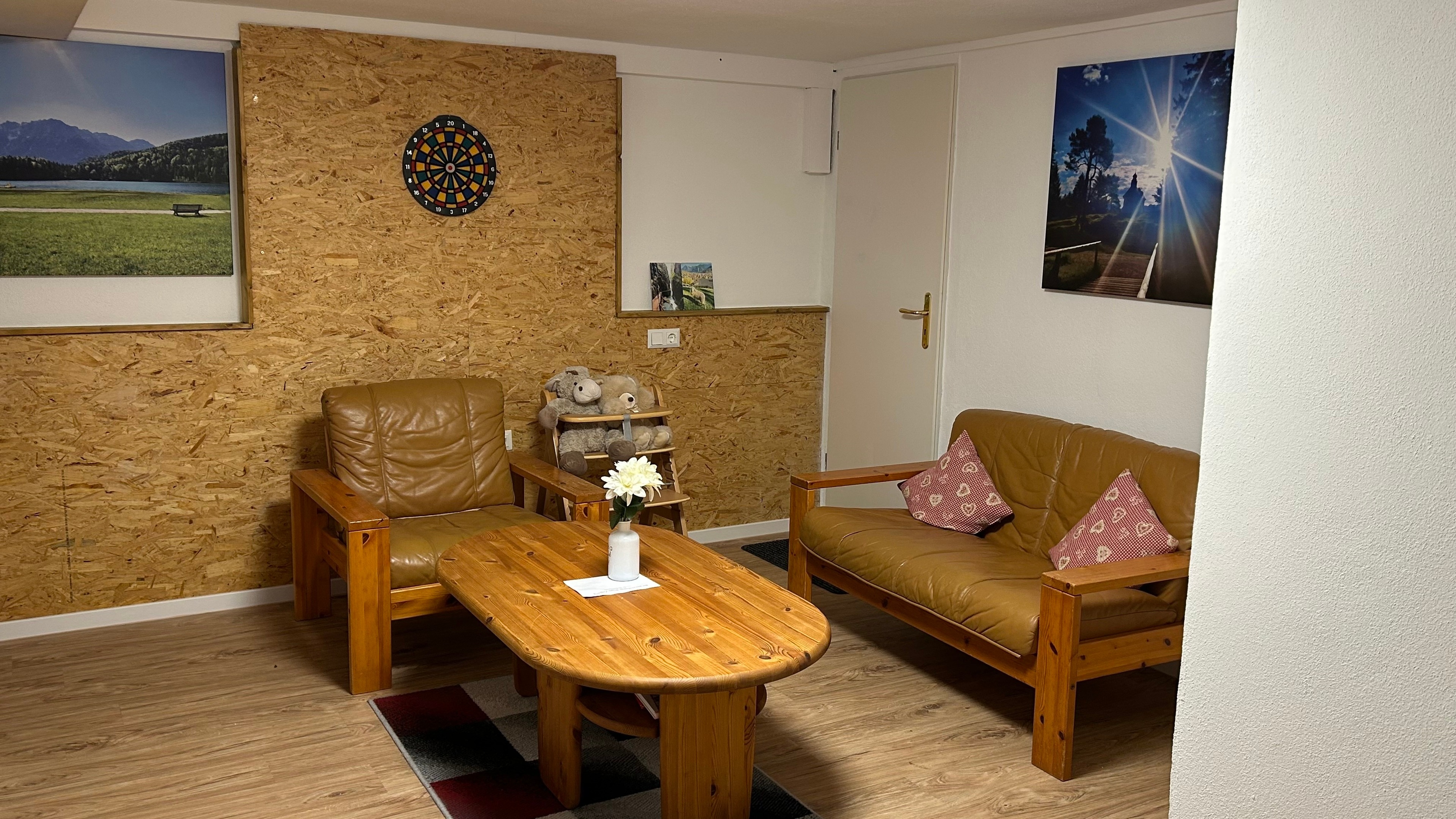 Ab einer Belegung von 6 Personen öffnet sich das Untergeschoss und erweitert die Ferienwohnung von 75 auf 135 Quadratmeter. Noch mehr Raum für gemeinsame Aktivitäten und Rückzugsmöglichkeiten! (mit eigenem Wohnzimmer und Bad, keine eigene Küche).