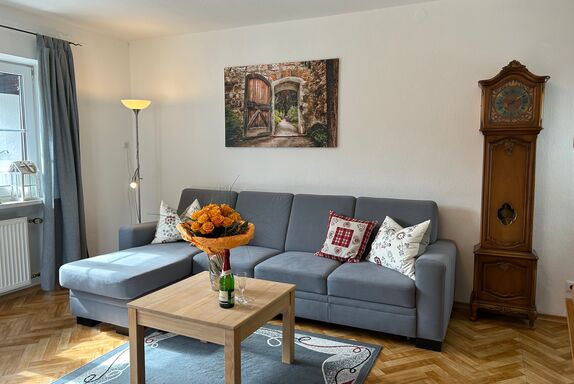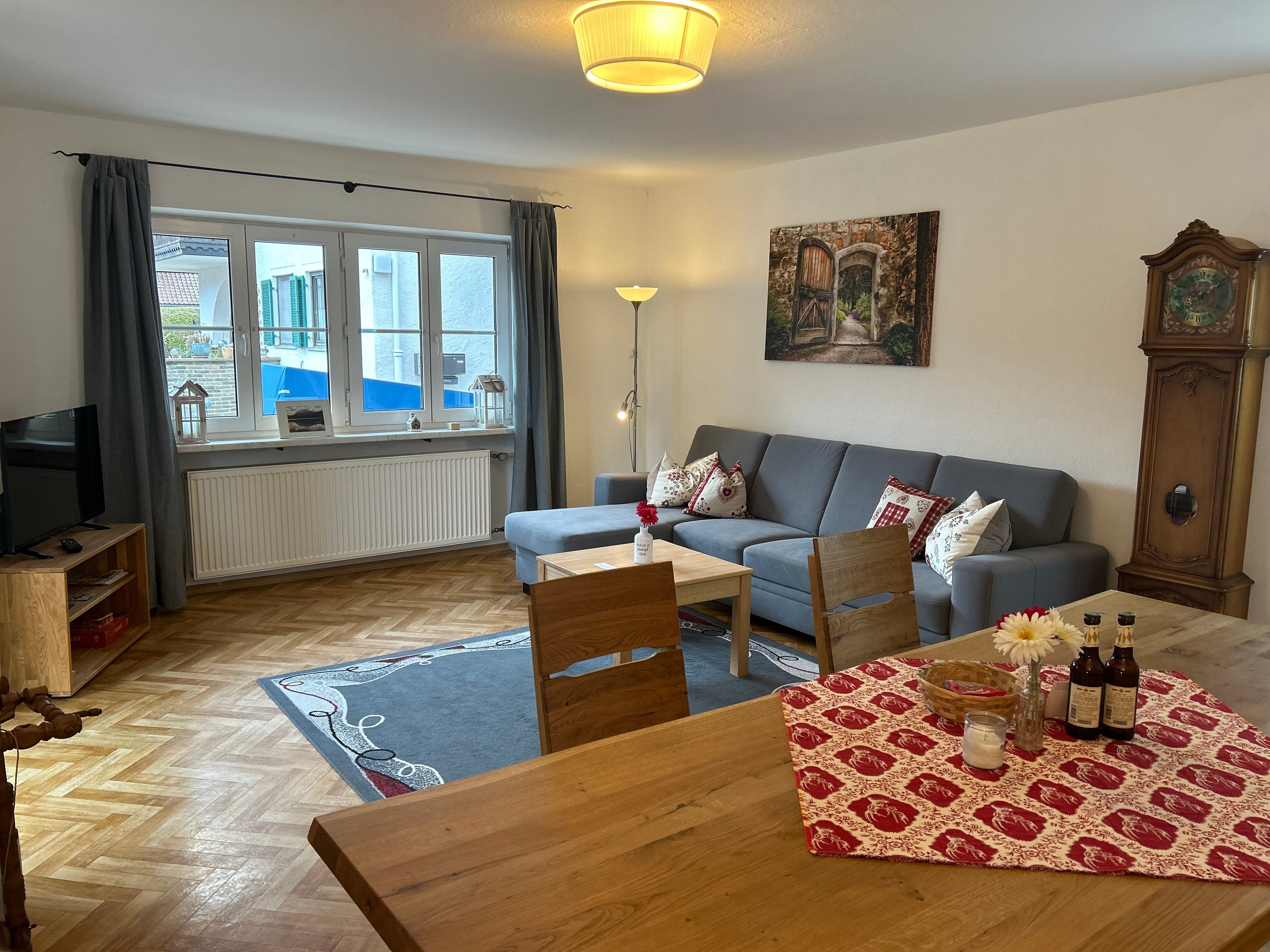 Großzügiger Wohnbereich: Der stilvoll eingerichtete Wohnbereich lädt zum Entspannen und gemütlichem Beisammensein ein. Hier können Sie mit Familie und Freunden unvergessliche Abende verbringen.