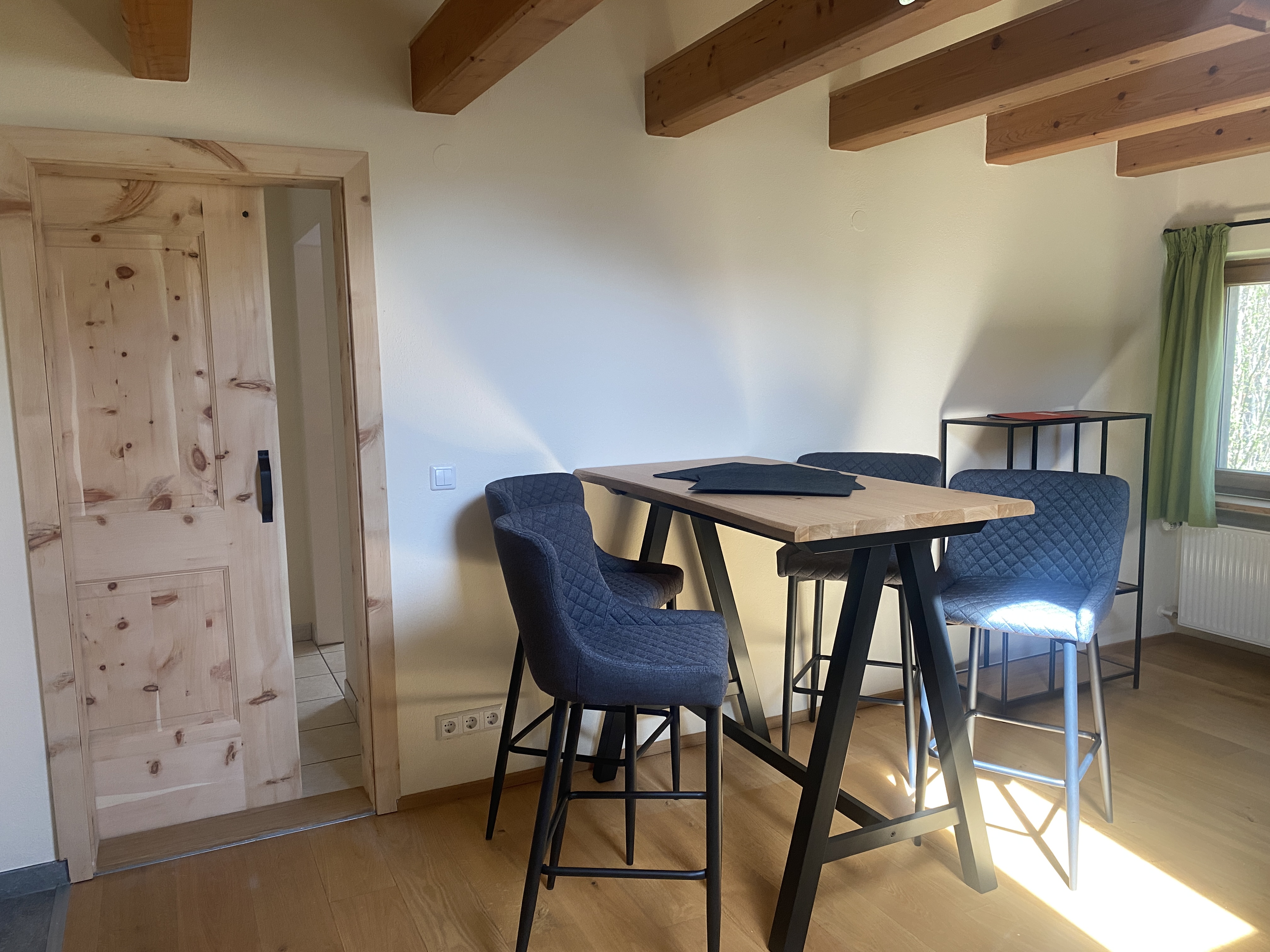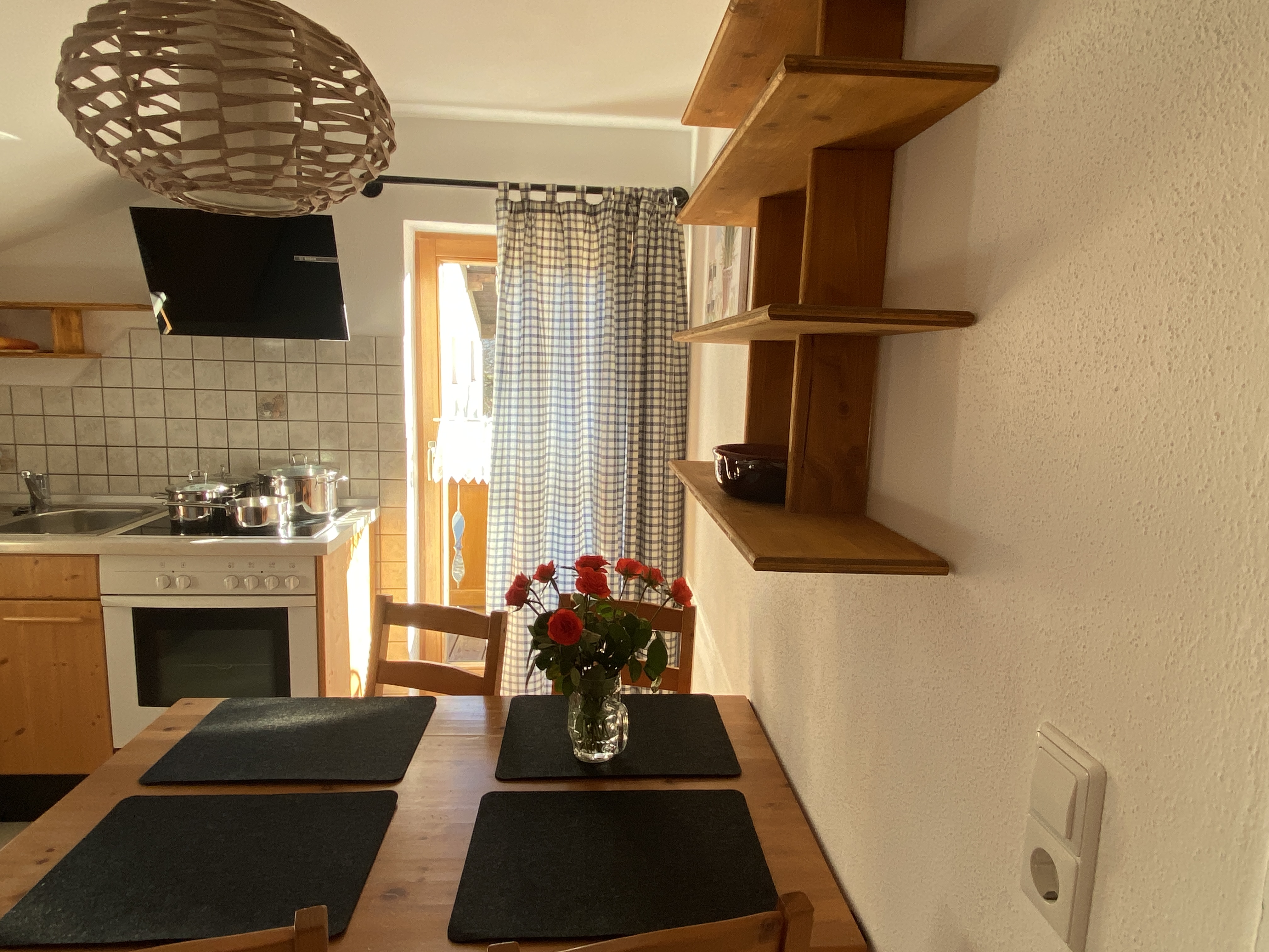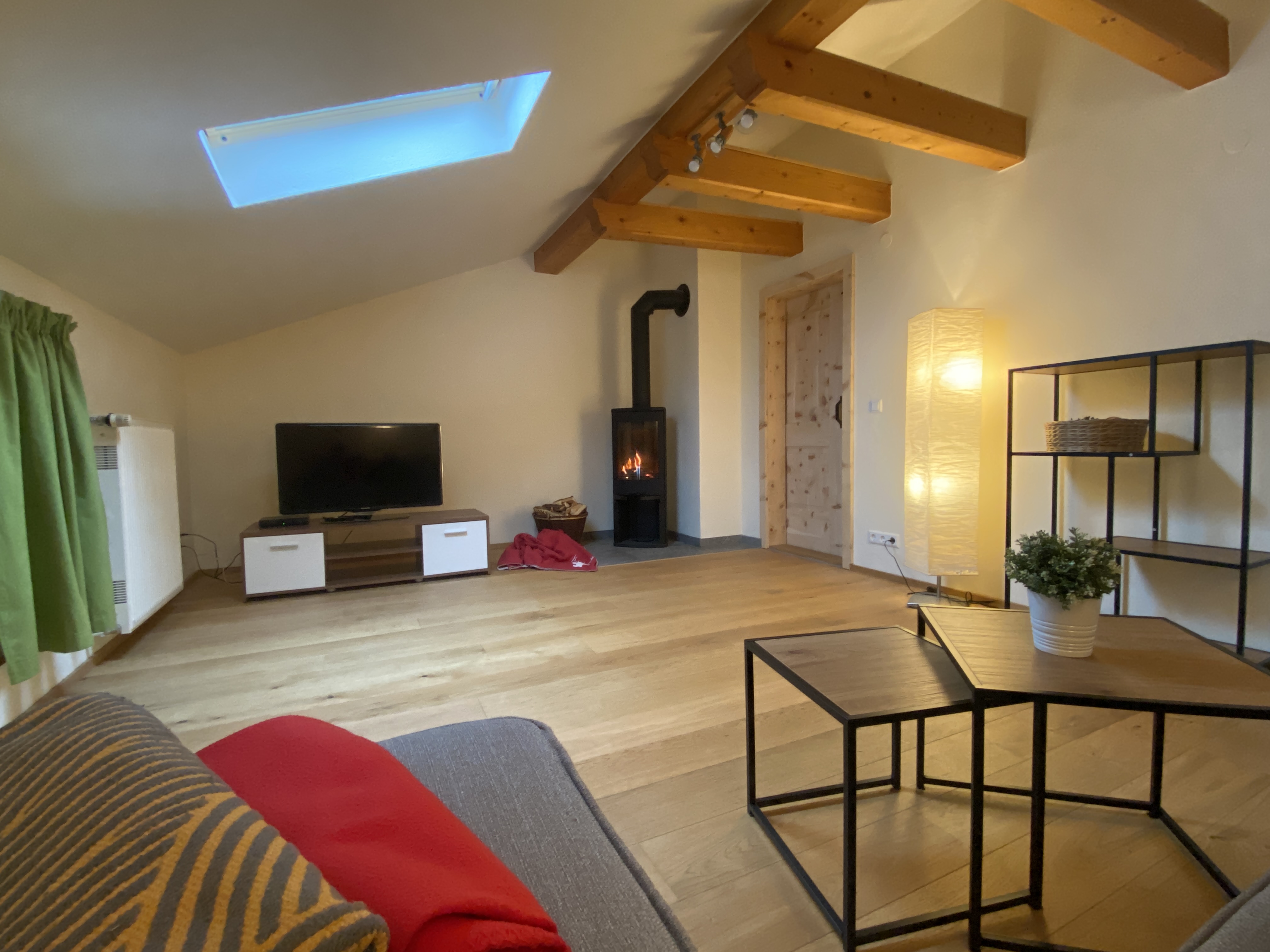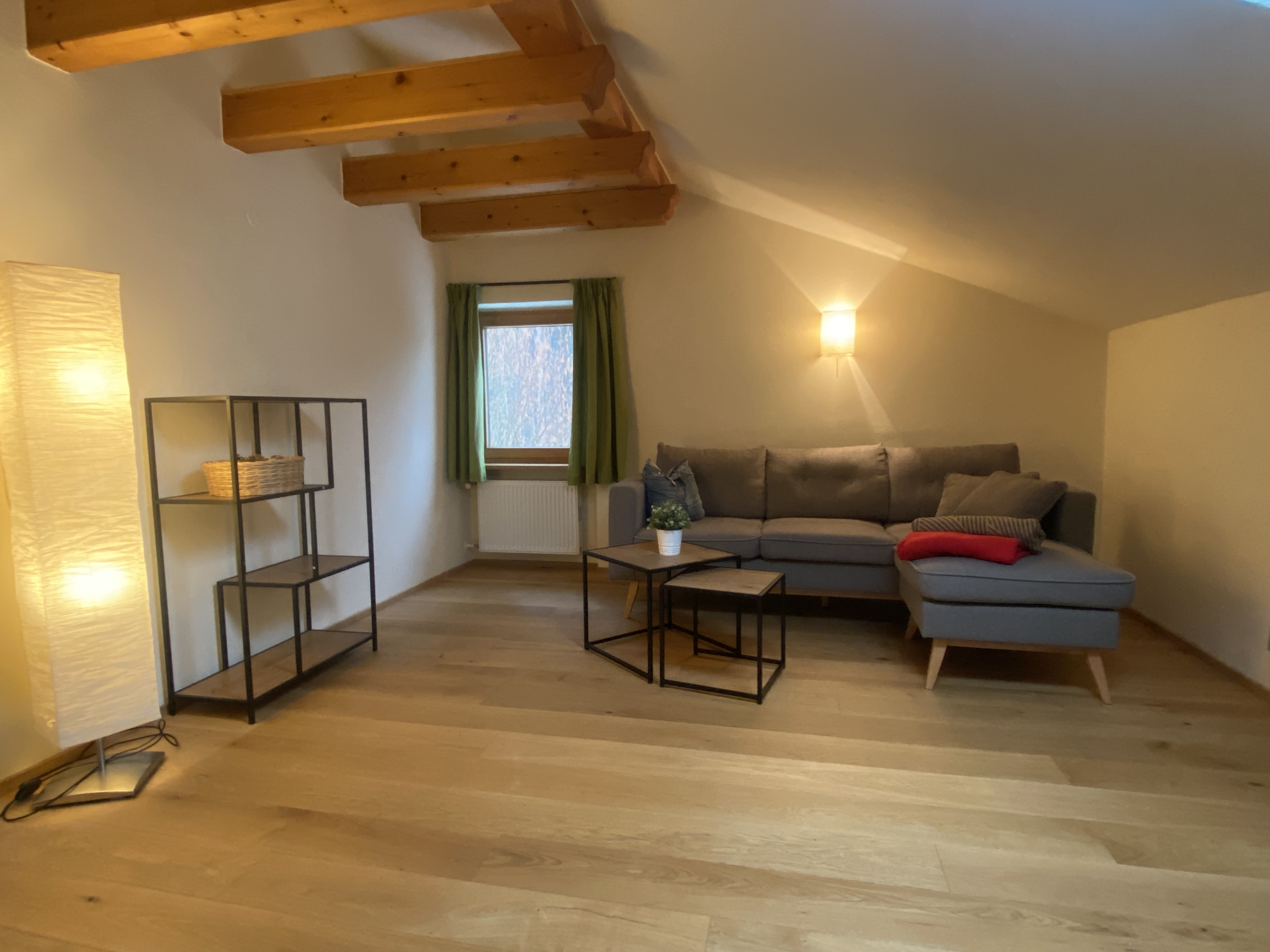 Unsere Ferienwohnung Bergfreund ist im Nebenhaus im 1.Obergeschoss. Die Küche und das zweite Schlafzimmer mit Einzelbett ist mit Balkon, zur Süd-West-Seite ausgerichtet und fängt viel Sonne ein. Das Wohnzimmer mit unserer Zirbentüre ist mit einem Schwedenofen ausgestattet, der in der Winterzeit zusätzliche Wärme und Gemütlichkeit wiedergibt. Das Schlafzimmer mit Doppelbett ist zur Waldseite ausgerichtet und im Bett können Sie die Sterne zählen oder den Wolken beim Schweben zusehen. Das Badezimmer ist klein aber fein und bietet alles was für das tägliche Wohlbefinden wichtig ist. Die Wohnung ist Mansarde mit sichtbaren Balken aus Fichten-Massivholz und viel Raumhöhe. Nutzen Sie Ihre Urlaubszeit und kreieren Sie Ihre eigene Pizza in unserem Pizzaofen.