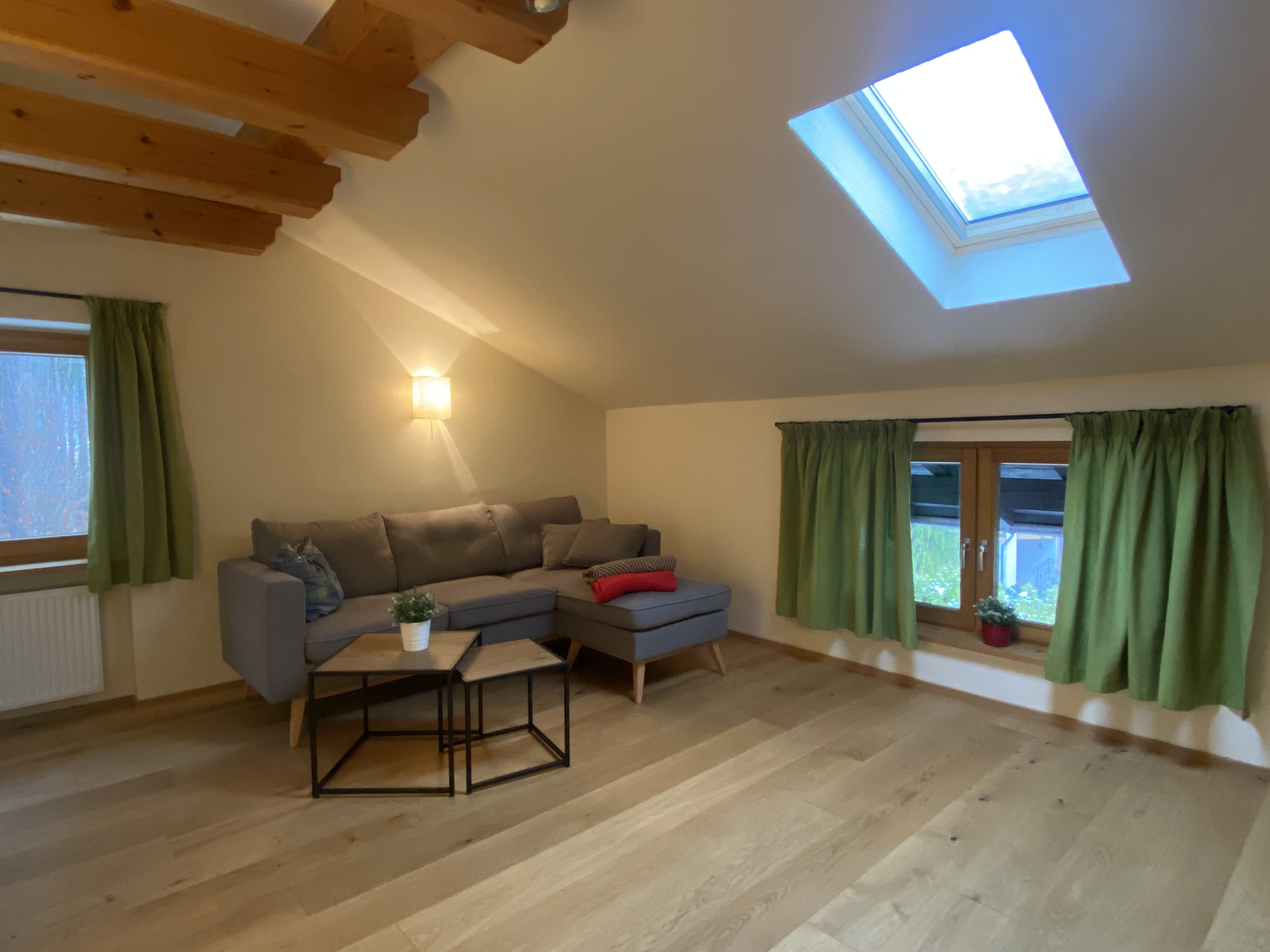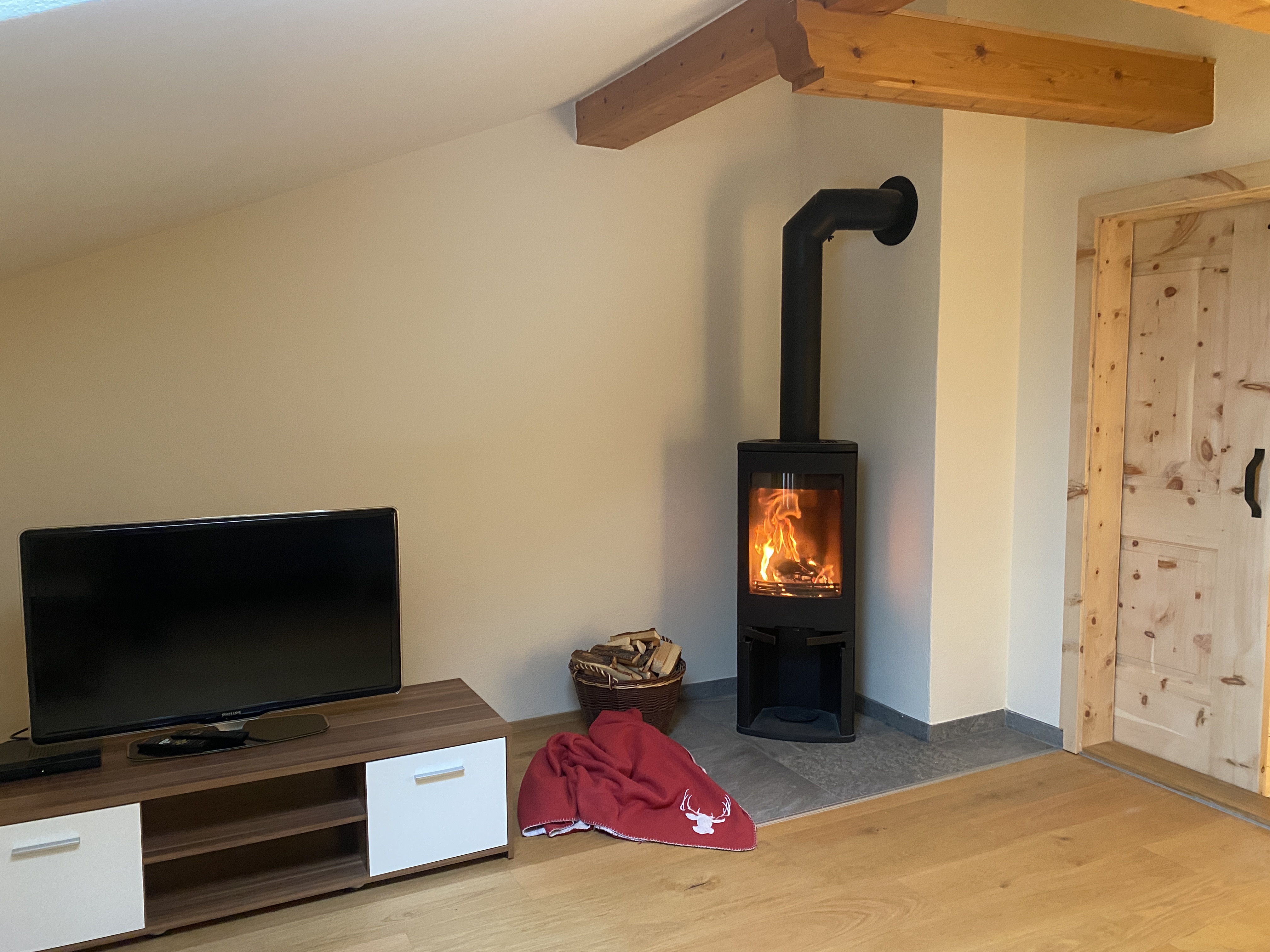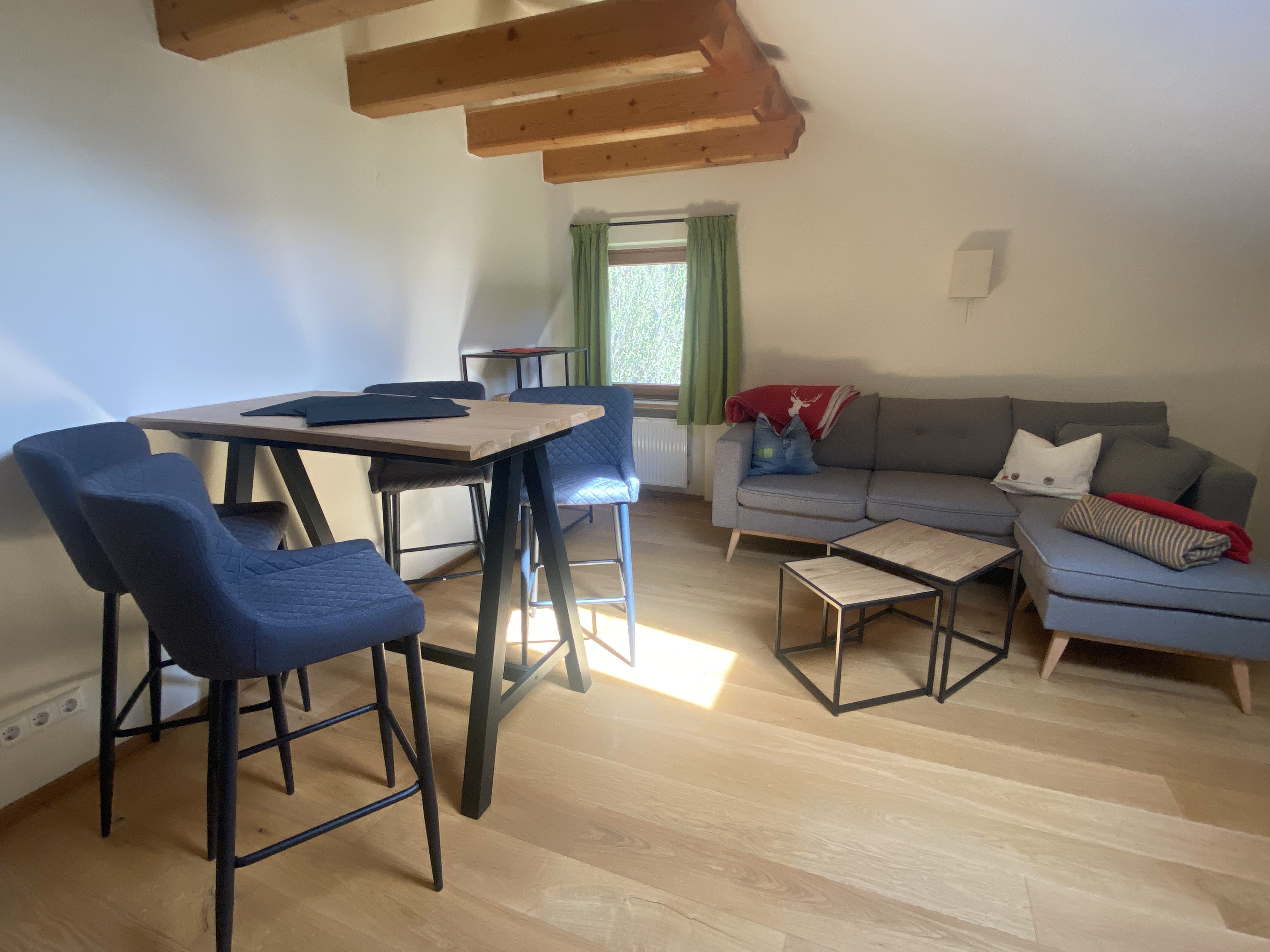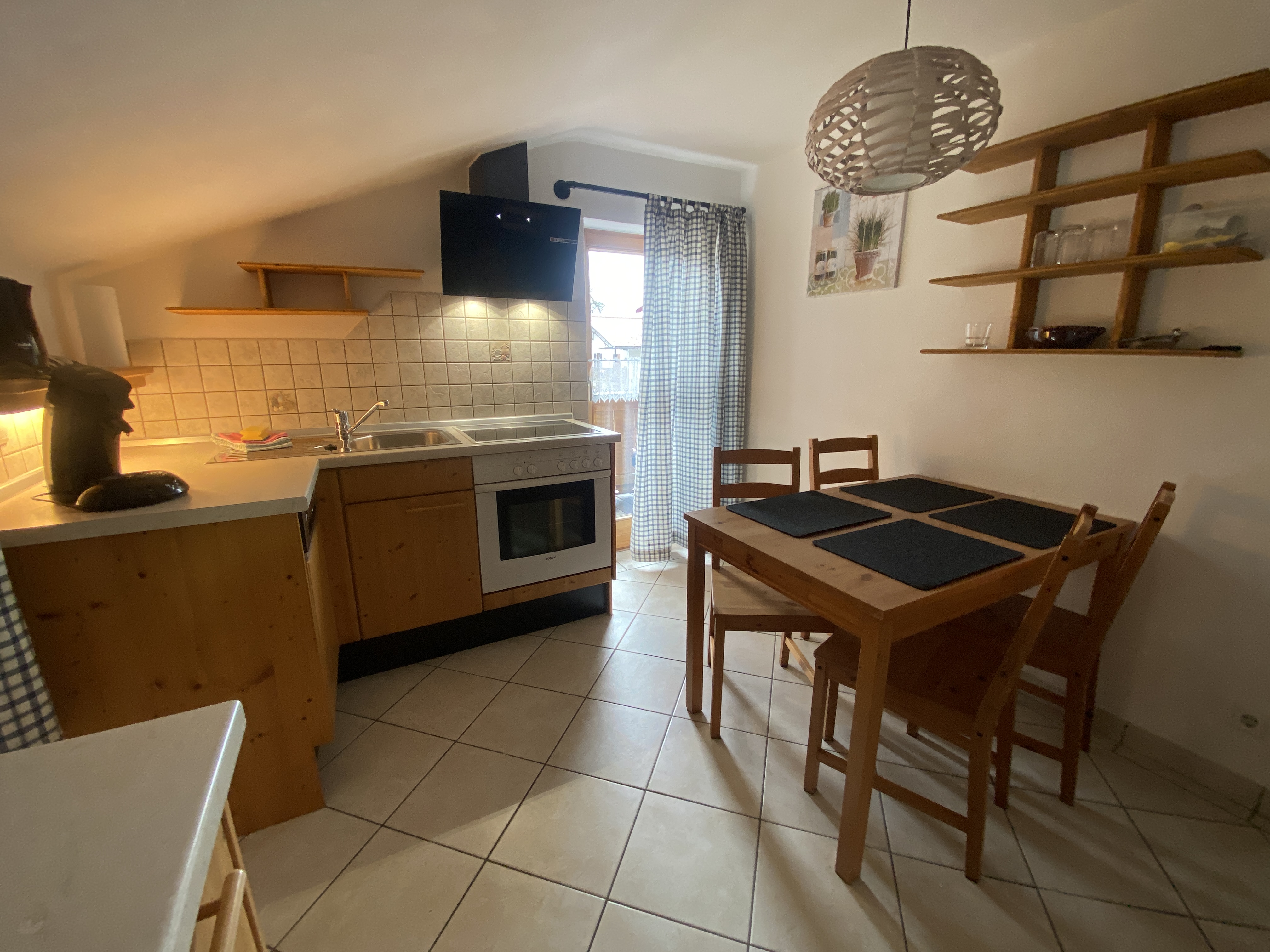 Unsere Ferienwohnung Bergfreund ist im Nebenhaus im 1.Obergeschoss. Die Küche und das zweite Schlafzimmer mit Einzelbett ist mit Balkon, zur Süd-West-Seite ausgerichtet und fängt viel Sonne ein. Das Wohnzimmer mit unserer Zirbentüre ist mit einem Schwedenofen ausgestattet, der in der Winterzeit zusätzliche Wärme und Gemütlichkeit wiedergibt. Das Schlafzimmer mit Doppelbett ist zur Waldseite ausgerichtet und im Bett können Sie die Sterne zählen oder den Wolken beim Schweben zusehen. Das Badezimmer ist klein aber fein und bietet alles was für das tägliche Wohlbefinden wichtig ist. Die Wohnung ist Mansarde mit sichtbaren Balken aus Fichten-Massivholz und viel Raumhöhe. Nutzen Sie Ihre Urlaubszeit und kreieren Sie Ihre eigene Pizza in unserem Pizzaofen.