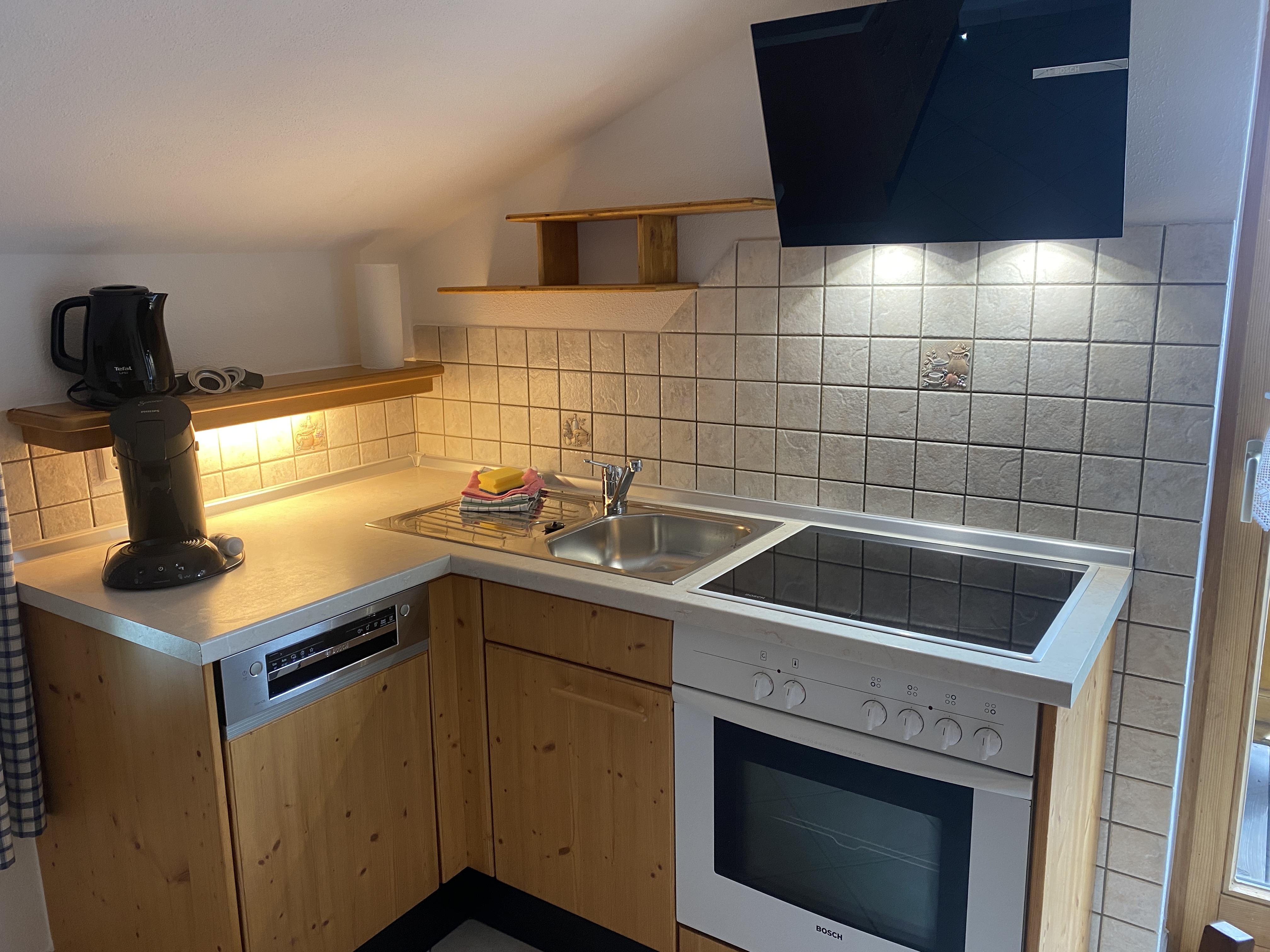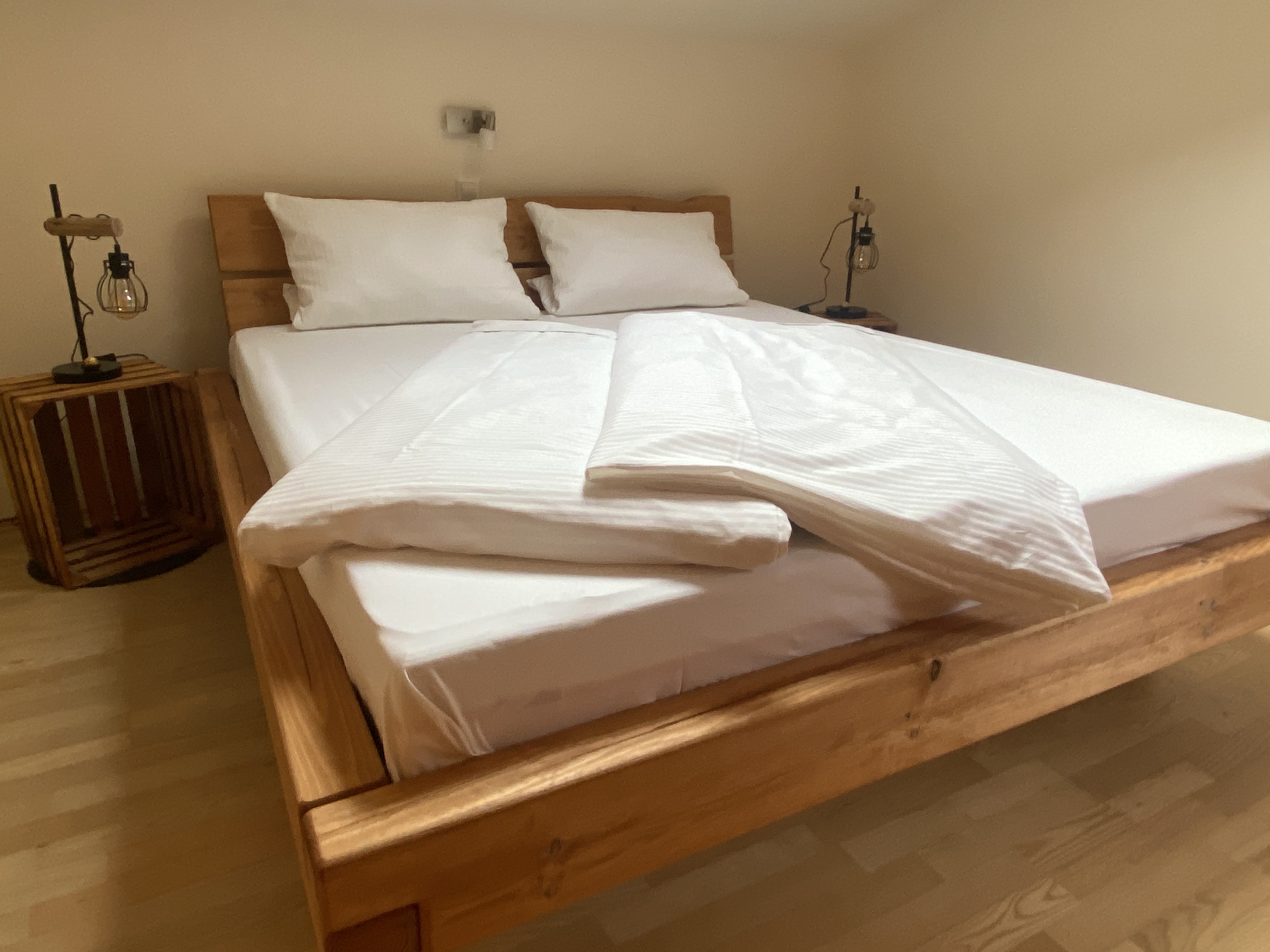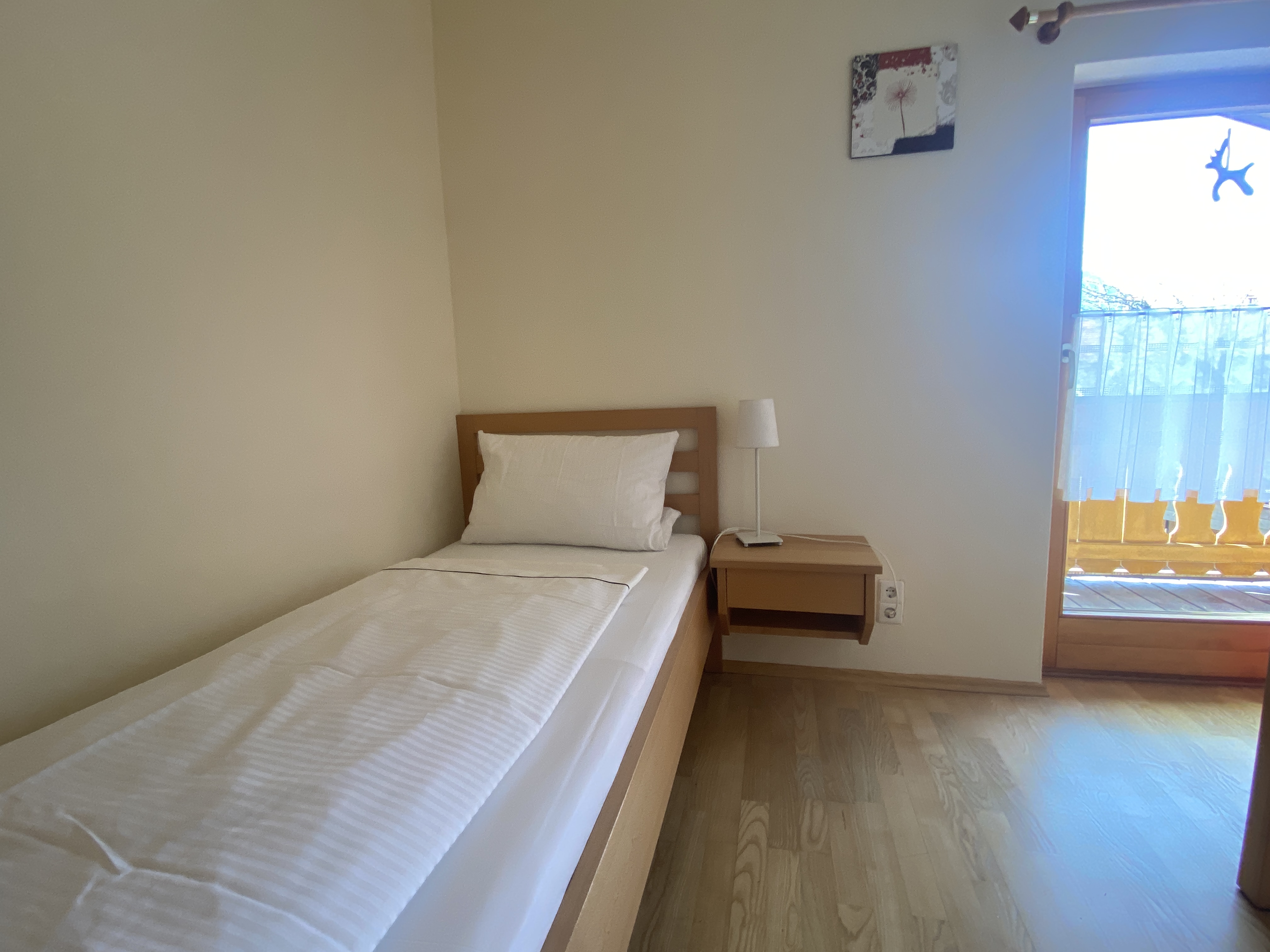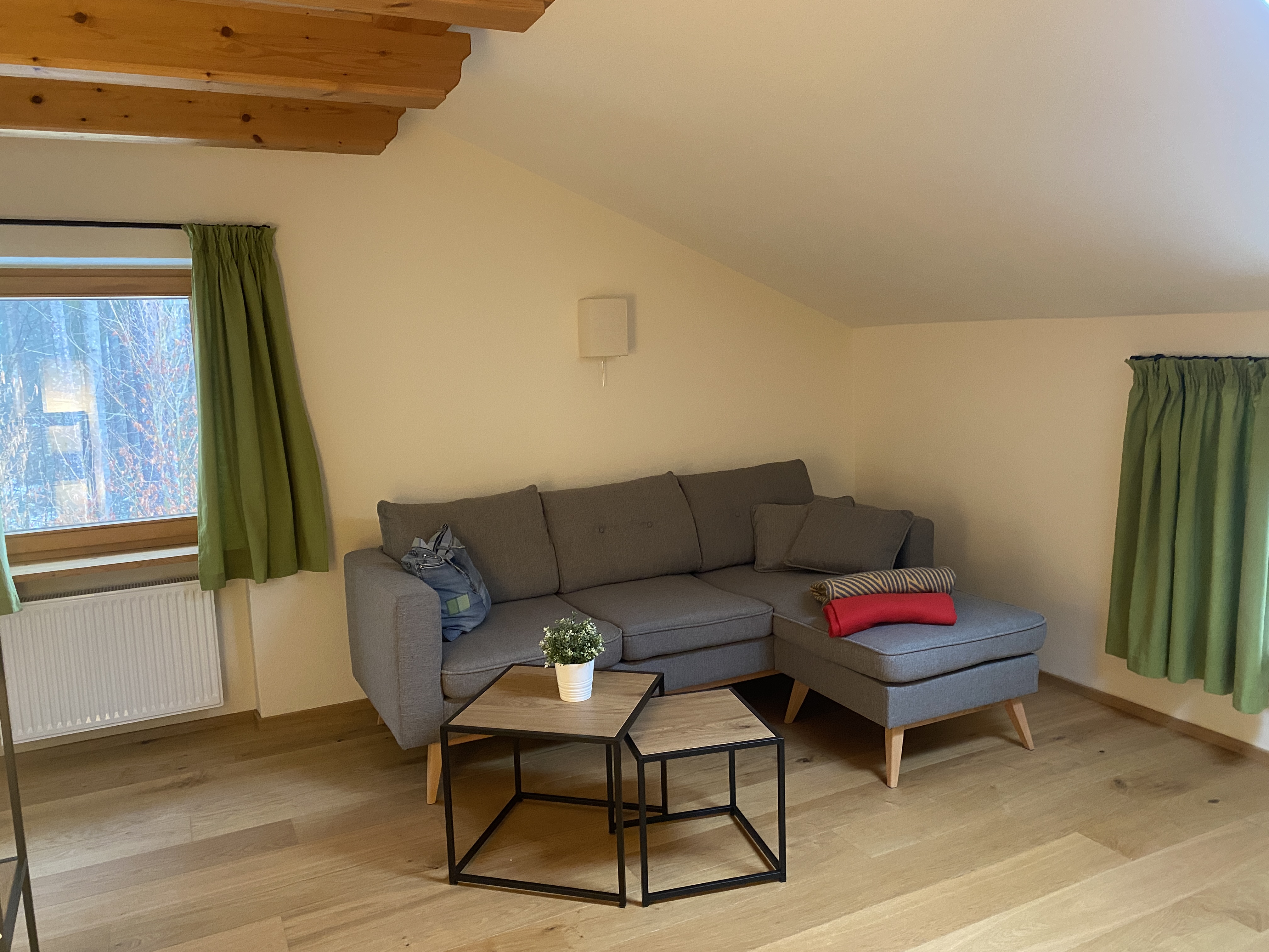 Unsere Ferienwohnung Bergfreund ist im Nebenhaus im 1.Obergeschoss. Die Küche und das zweite Schlafzimmer mit Einzelbett ist mit Balkon, zur Süd-West-Seite ausgerichtet und fängt viel Sonne ein. Das Wohnzimmer mit unserer Zirbentüre ist mit einem Schwedenofen ausgestattet, der in der Winterzeit zusätzliche Wärme und Gemütlichkeit wiedergibt. Das Schlafzimmer mit Doppelbett ist zur Waldseite ausgerichtet und im Bett können Sie die Sterne zählen oder den Wolken beim Schweben zusehen. Das Badezimmer ist klein aber fein und bietet alles was für das tägliche Wohlbefinden wichtig ist. Die Wohnung ist Mansarde mit sichtbaren Balken aus Fichten-Massivholz und viel Raumhöhe. Nutzen Sie Ihre Urlaubszeit und kreieren Sie Ihre eigene Pizza in unserem Pizzaofen.