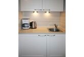 • kleine, offene Küche mit Kühlschrank, Mikrowelle, Kaffeemaschine, Wasserkocher, Eierkocher, Toaster