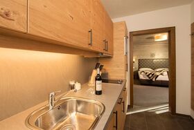 Studio Jägerstube mit ca. 30 m²: 1 Schlafzimmer mit Doppelbett; voll ausgestattete Wohnküche mit Essecke, Flatscreen-TV, Illy Kaffeemaschine, Geschirrspüler, Cerankochfeld uvm.; 1 Badezimmer mit Badewanne/WC; Balkon oder Terrasse.