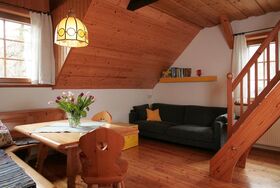 Die Ferienwohnung mit 60 m² bestehend aus Wohnraum mit Kochnische und Essecke, 2 separaten Schlafzimmern mit je 2 Betten. Dusche/WC, Balkon. Sat-TV.