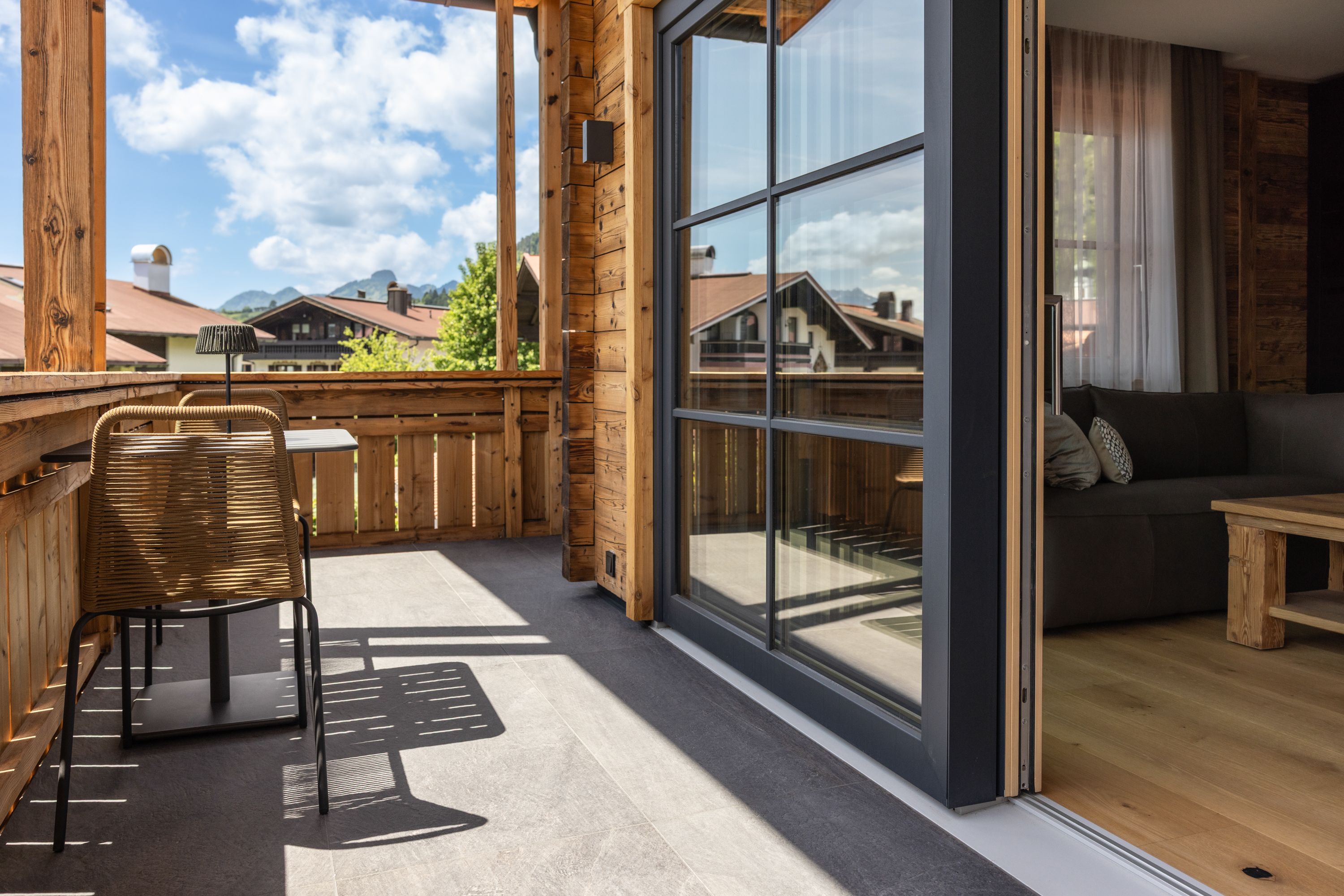 Für alle, die Ruhe mit Stil und Natur mit Komfort verbinden möchten: Sobald Sie Das Denisl betreten, stellt sich ein tiefes Gefühl der Erholung ein. Mitten im Herzen von Reit im Winkl, zentral an der Sonnenloipe, wartet ein neues Apartmenthaus mit 14 stilvollen, hellen Ferienwohnungen voller Flair auf Ihre unvergessliche Zeit im Chiemgau. Viel Altholz, gedeckte Farben, indirekte Beleuchtung, schwarze Armaturen und große Türen zu Balkon oder Terrasse machen Ihre Urlaubstage zu einem echten Design-Erlebnis. Freuen Sie sich auf bestens ausgestattete Küchen, einladende Essbereiche, gemütliche Ledersofas, große Waschtische, kuschelige Boxspringbetten und Regenduschen, die Sie rundum verwöhnen und entspannen lassen. Im Haus zählt der großzügige Aufenthalts- und Eventraum mit 120 m² zu einem beliebten Treffpunkt, um gemütlich zusammenzusitzen, gemeinsam zu feiern oder Tagungen durchzuführen – ausgestattet mit Küche, Theke, Tontechnik, Getränke-/Snackautomat und einer großen Sonnenterrasse mit Blick ins Grüne. Für Aktive Urlauber beginnen direkt vor der Tür idyllische Wanderwege, tolle Biketouren und gepflegte Skiloipen im Winter. Ihre Ausrüstung ist dabei bestens aufgehoben: im großen Skikeller mit Spinden und Skiwerkstatt sowie im Radlhäusl mit Fahrraddusche, Werkstatt und Spinden. Für entspannte Momente sorgt die charmante Sauna im Garten – Ihr Rückzugsort für Körper und Geist. Familien freuen sich über den Spielplatz und das Freibad ganz in der Nähe, aktive Urlauber schätzen schätzen die Haltestelle für den Wanderbus direkt hinter dem Haus. Kostenlose Parkplätze sind in ausreichender Anzahl im Hof vorhanden und wer elektrisch unterwegs ist, findet eine E-Ladestation bei der nahen Tourist-Info.