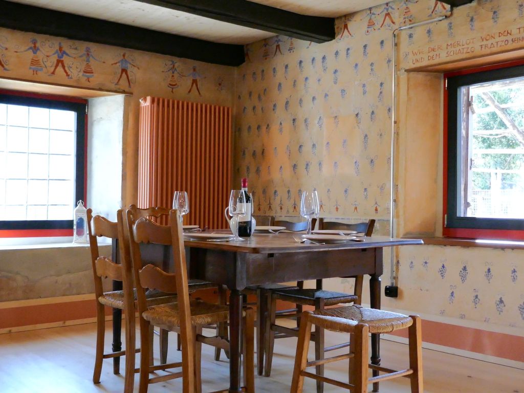 Casa Jolli, 5-Zimmer-Haus 120 m2 auf 3 Stockwerken. Geräumig, teilweise renoviert im Jahre 2025, komfortabel und gemütlich eingerichtet: Wohn-/Esszimmer mit offenem Kamin (nur Deko), Esstisch und TV (Flachbildschirm), Holzofen. Ausgang zur Terrasse. Offene Küche (Backofen, Geschirrspüler, 4 Glaskeramikplatten, Toaster, Wasserkocher, Tiefkühler, elektrische Kaffeemaschine, Kapseln für die Kaffeemaschine (Delizio) extra, Racletteofen, Kochinsel, Fondue Set (Käse)). Obergeschoss: (Wendeltreppe) 1 Doppelzimmer mit 1 Doppelbett (1 x 180 cm, Länge 200 cm). Ausgang zum Balkon. 1 Zimmer mit 1 franz. Bett (1 x 160 cm, Länge 200 cm). Ausgang zum Balkon. Dusche, sep. WC. Warmluftheizung. 2. Obergeschoss: 1 Doppelzimmer mit 1 Doppelbett (1 x 180 cm, Länge 200 cm), Waschbecken. Ausgang zum Balkon. 1 Zimmer mit 1 franz. Bett (1 x 160 cm, Länge 200 cm), Waschbecken. Ausgang zum Balkon. Holzdielenboden. 2 Balkone, grosser Garten, Rasen. Terrassenmöbel, Balkonmöbel, Gartengrill (mobil), Liegestühle (3), Sitzplatz. Schöne Sicht auf die Berge, das Tal und den Garten. Zur Verfügung: Kinderhochstuhl, Babybett bis 2 Jahre (extra), Haartrockner, Holz (extra). Internet (WLAN, gratis). Bitte beachten: geeignet für Familien. Nichtraucher-Haus. NL-