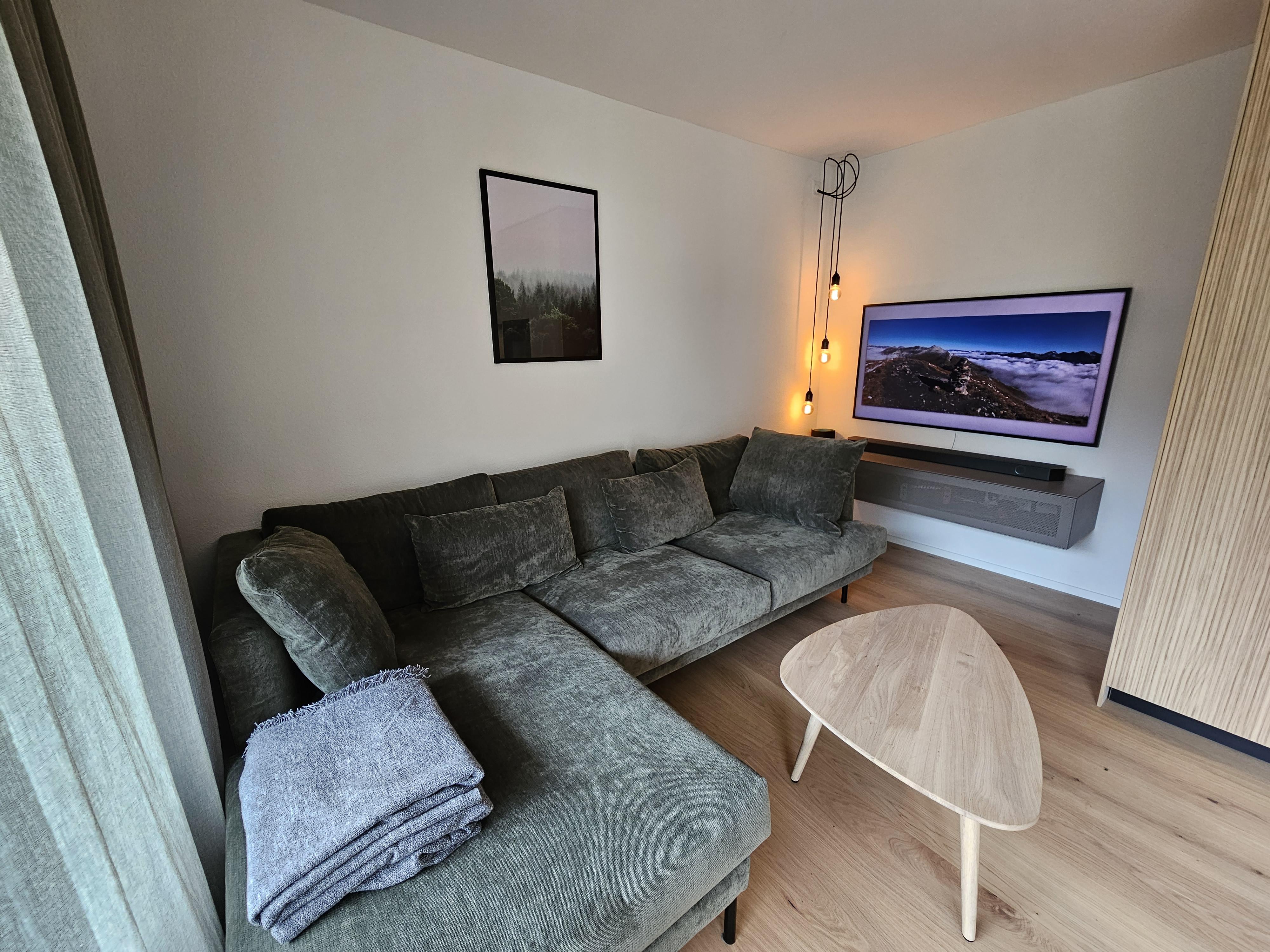 3.5- Zimmerwohnung / 1. Etage / hoher Ausbaustandart (frisch renoviert) / Wohnzimmer mit offener Küche und Essbereich / Schlafzimmer 1 (2 Personen) mit 180 x 200 Hüsler Nest / Schlafzimmer 2 (4 Personen) mit Etagenbett 2x 160 x 200, 100% Daunenduvets / zahlreiche Einbauschränke mit viel Platz / Bodenheizung (Zimmer einzeln regulierbar) / Eichenparkett / elektrische Lamellenstoren / schönes grosszügiges Badezimmer / Regendusche und Duschbrause / Miele Küchengeräte (Backofen, Geschirrspüler, Kühlschrank) / grosses Bora Induktionskochfeld mit Abzug / Barista- Kaffeemaschine /grosser TV-Flachbildschirm / Nintendo Switch, Radio mit Bluetooth, Legobox & Spiele / möblierter Balkon 15m2 / Hunde erlaubt gegen Aufpreis