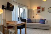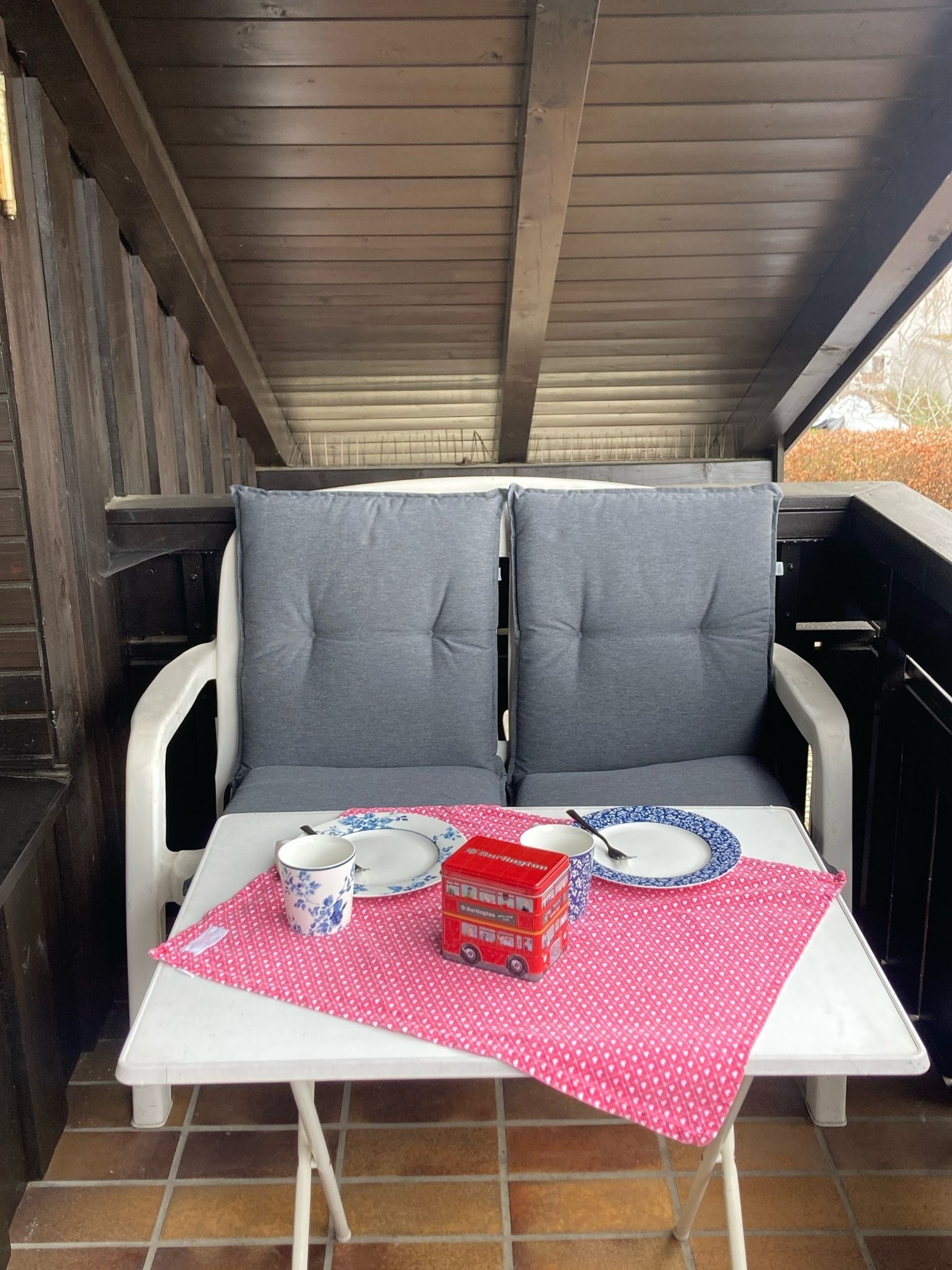 Der Balkon mit Ostausrichtung lädt zum Entspannen ein. Das Badezimmer verfügt über eine ebenerdige Dusche. Ein Esstisch für 4 Personen und ein Smart-TV runden die Ausstattung ab.