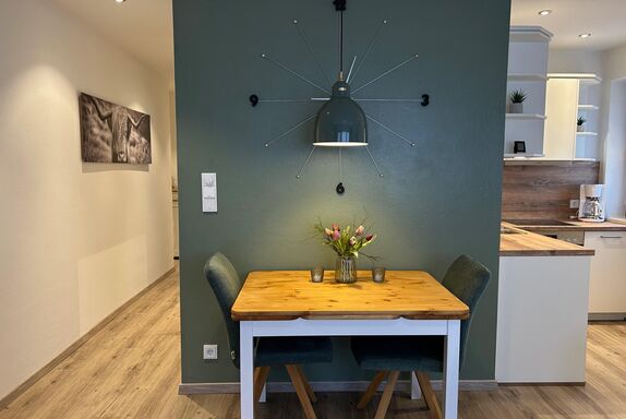 Die liebevolle Einrichtung schafft eine warme Atmosphäre, die zum Entspannen einlädt. Hier finden Sie nicht nur einen Rückzugsort, sondern auch einen Ort, an dem Erinnerungen entstehen. Der großzügige Balkon im Südwesten, der sich um die Ecke erstreckt, lädt dazu ein, die Seele baumeln zu lassen. Hier können Sie entspannt verweilen und die warmen Sonnenstrahlen genießen.