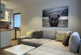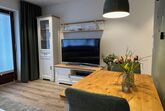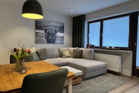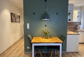 Diese neu renovierte, moderne Ferienwohnung bietet Ihnen auf 45 qm sofortige Annehmlichkeiten, darunter einen geschmackvollen Wohnbereich mit einer bequemen Couch und einem Esstisch, an dem Sie gemeinsame Mahlzeiten genießen können. Der Smart-TV sorgt für Unterhaltung und gemütliche Abende.