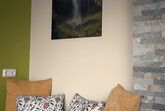 Im obersten Stock befindet sich ein Schlafzimmer, Bad, WC. Weiters eine Küche mit Essbereich und angrenzendem Wohnzimmer mit Schlafcouch, sowie Zugang zur Terrasse. Im unteren Bereich des Hauses befindet sich der Eingangsbereich, weiters ein Fitnessraum und eine Sauna.