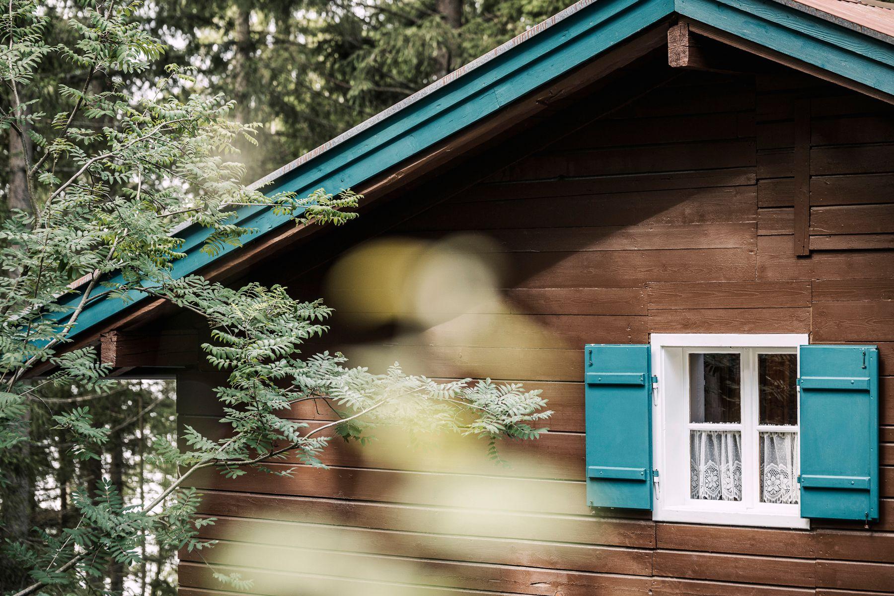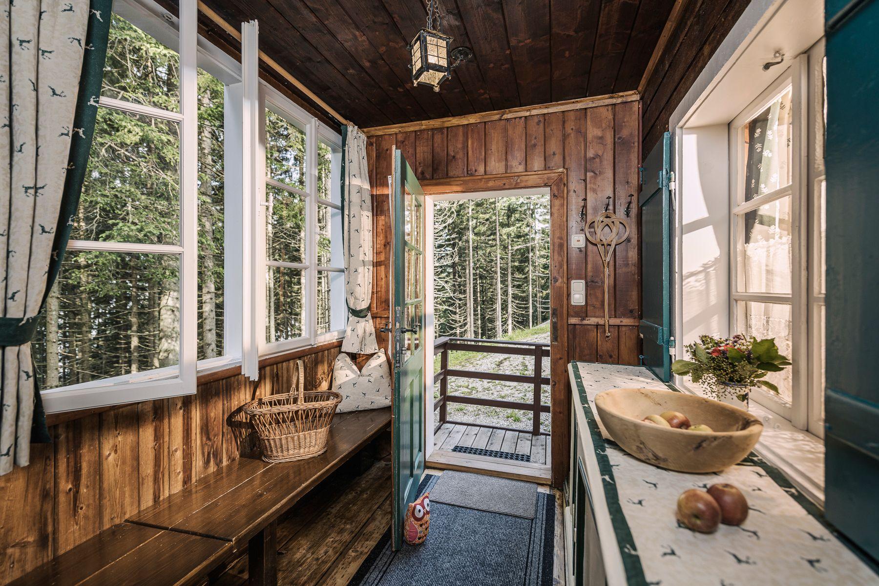 Umrandet von einem dichten Wald in einer idyllischen Lichtung erwartet euch auf 1.380 m die Fichtenwald Hütte.