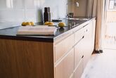 die Bregenzerwälder Berge, Eichenvollholzboden, Wohn- Küchenbereich mit gemütlichem Sitzsofa, Esstisch, Küchenblock mit Nespresso