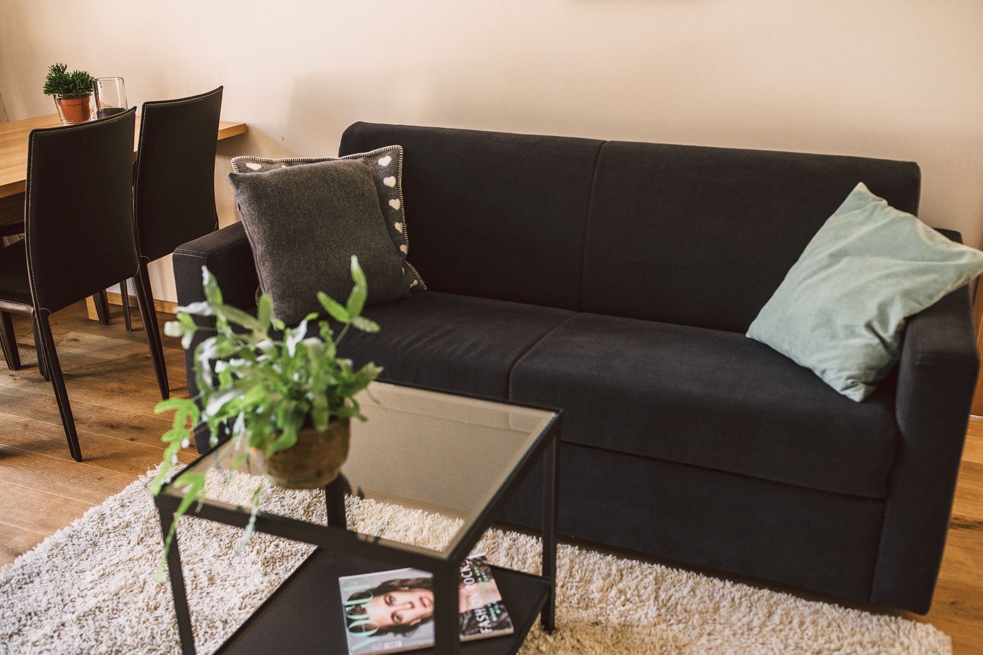 Freuen Sie sich auf lichtdurchflutete Apartments, mit Liebe zum Detail und zur Natur eingerichtet, in schlichtem aber stilvollem Design, die Möbel aus Zirbenholz, feinen Loden- Leinen- und Filzstoffen gefertigt ...