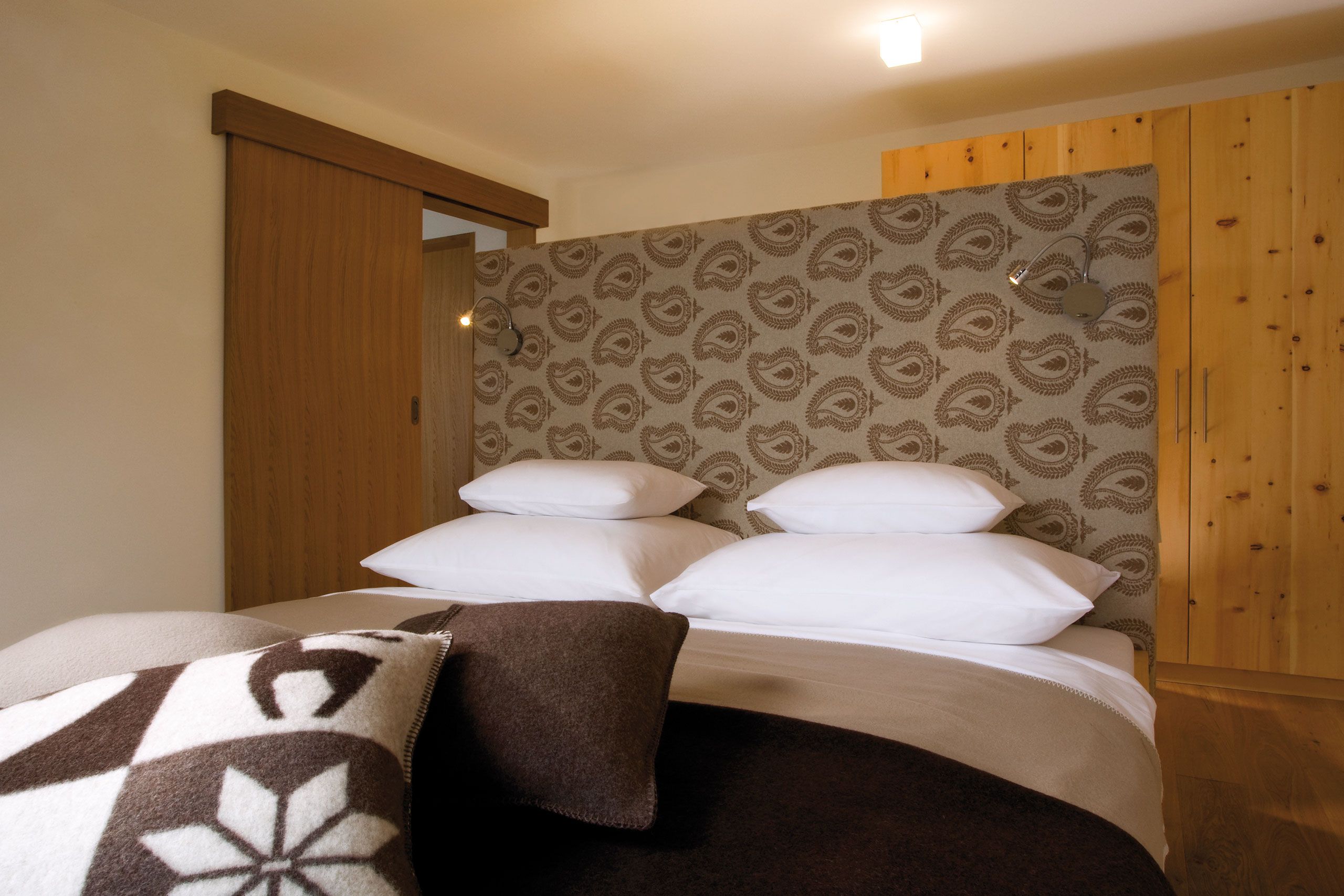 Freuen Sie sich auf exklusive, liebevoll eingerichteten Doppelzimmer mit Südbalkon oder unsere Apartments , alle mit Balkon, mit Liebe zum Detail und zur Natur eingerichtet, die Möbel aus Zirbenholz, feinen Loden- und Filzstoffen gefertigt ... und mit modern eingerichteten Küchen, falls Sie auch im Urlaub Ihrer Koch-Leidenschaft nicht widerstehen können!