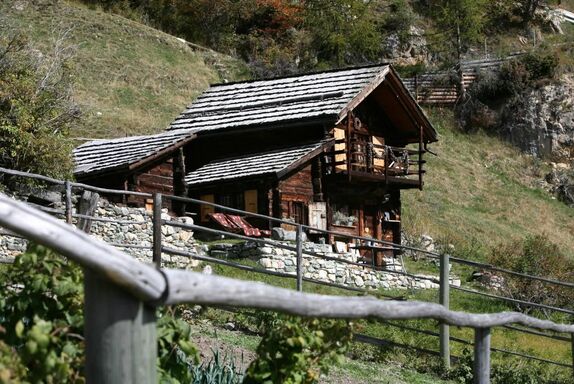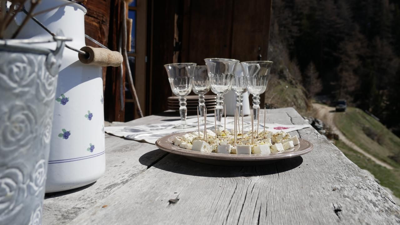 Das Maiensäss mit seinen von der Sonne vergoldeten Bohlen ist ein Symbol für den Almauftrieb von einst und eine echte Almhütte, in der Sie die Stille der Berge wiederfinden können. Man genießt die reine, klare Luft und die märchenhafte Aussicht auf den Alpenkessel. Der ganze Luxus liegt in der Landschaft und der wiedergefundenen Einfachheit.