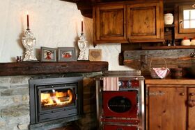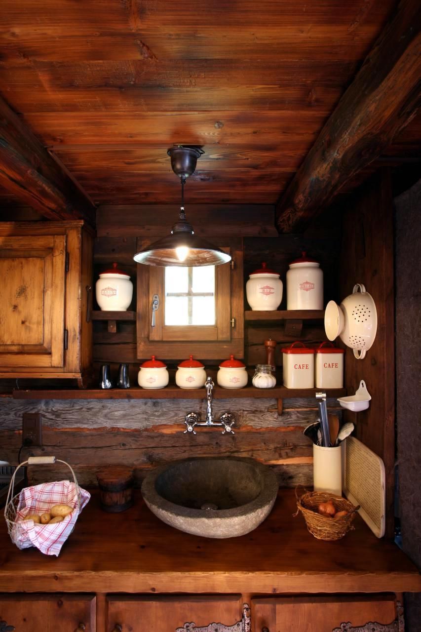 Sonstige Küchenausstattung (Kitchen1): Dies ist der Hauptraum des Maiensässes, in dem die Mahlzeiten zubereitet und gegessen werden und wo man mit der Familie oder mit Freunden zusammensitzt.