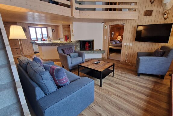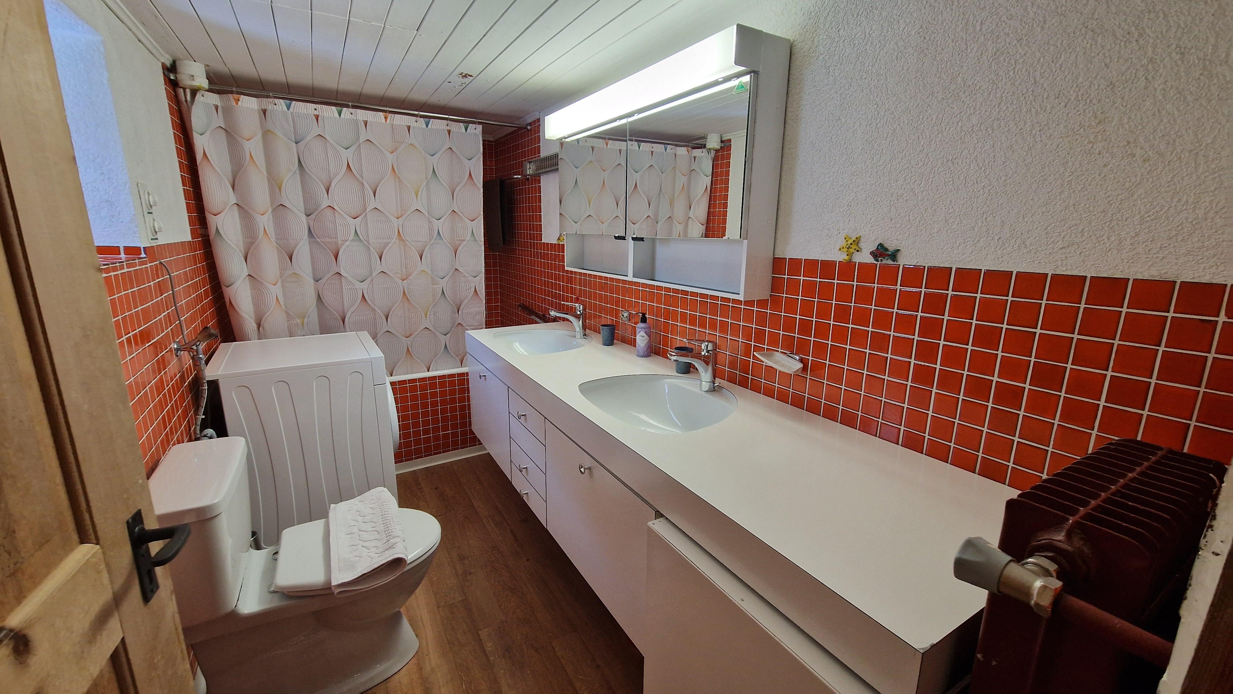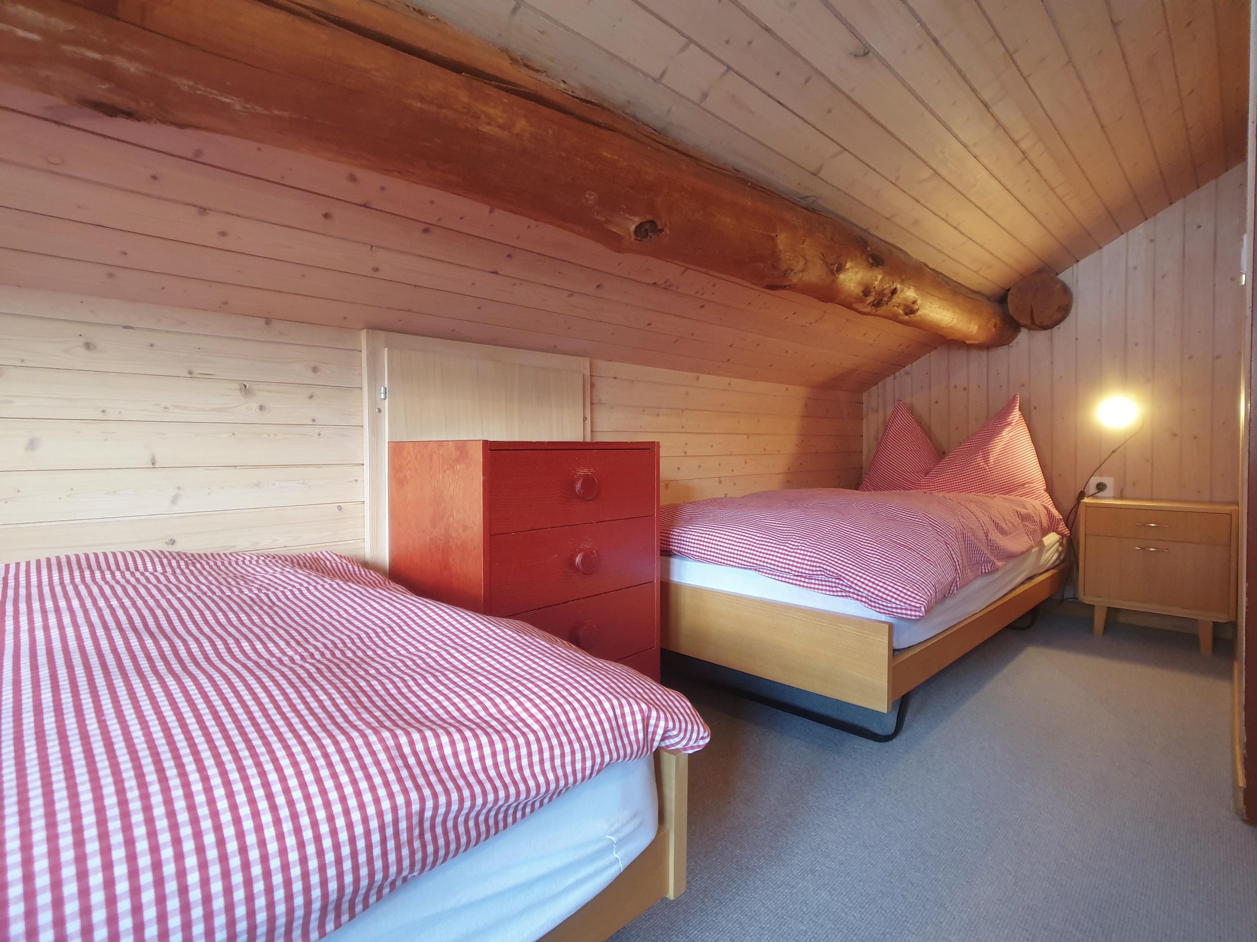 Schönes Duplex-Apartment in einem alten Walliserhaus. Auf der unteren Etage befinden sich 2 grosse Schlafzimmer (beide mit Doppelbett), ein grosser Wohn- und Essbereich mit Küche, ein Badezimmer mit WC, 2 Waschbecken und einer Badewanne sowie ein Balkon mit wunderschöner Aussicht. Im oberen Stockwerk befinden sich ein Schlafzimmer mit 2 Einzelbetten und ein Spielbereich für die Kinder. Kostenloses WIFI ist im Apartment vorhanden.