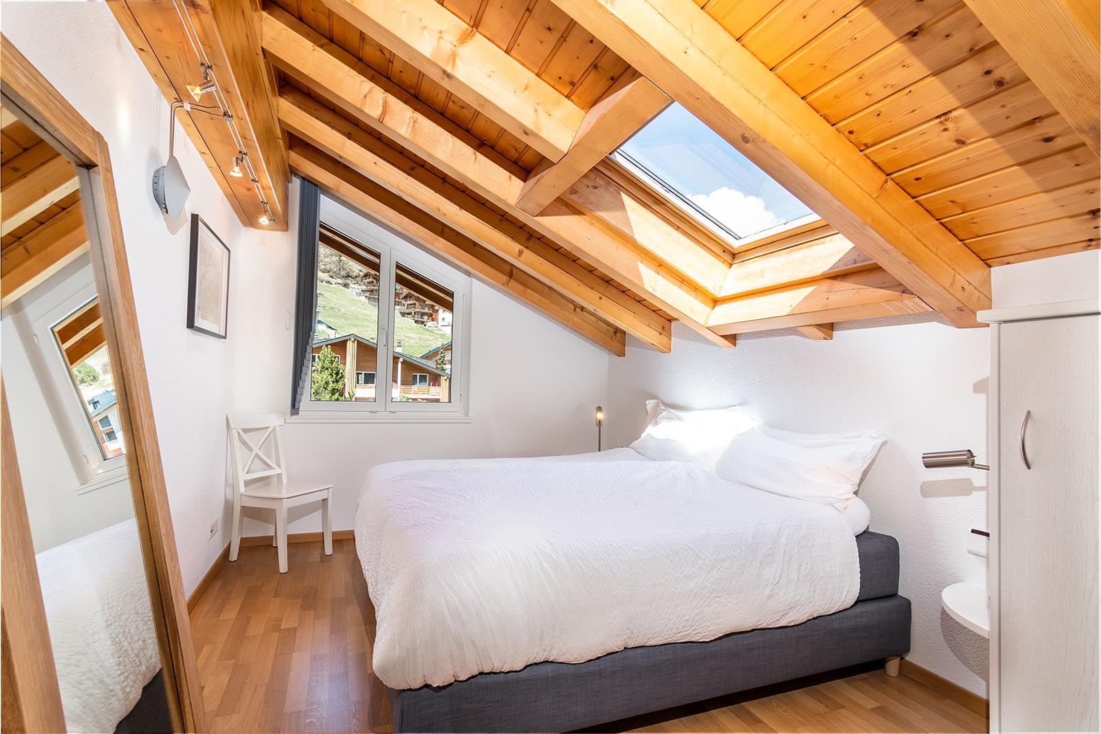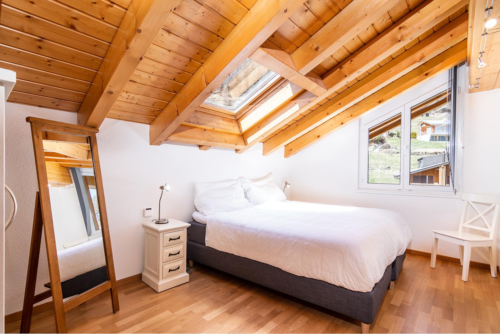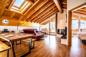 Die Wohnung befindet sich im Dachgeschoss und besteht aus 3 Schlafzimmern (alle Betten 180cm breit) und 2 Bädern (1x Ensuite mit Badewanne/WC, 1x mit Badewanne/WC). Die offene Küche ist mit allen Utensilien ausgestattet, einschließlich einer Nespresso-Maschine. Die Gäste profitieren ausserdem von einem Smart TV und kostenlosem Wifi. Die Highlights der Wohnung sind sicherlich der gemütliche Kamin und die tolle Aussicht vom Balkon.