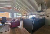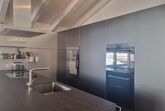 Im Dachgeschoss der Wohnung befindet sich der geräumige Wohn- und Essbereich. Die offene Küche der Marke Bulthaup, einer qualitativ sehr hochstehenden Designermarke, lässt keine Wünsche offen und entspricht höchsten Ansprüchen. Die Küche verfügt über einen Backofen, Geschirrspüler, Steamer und sogar einem Weinkühlschrank.