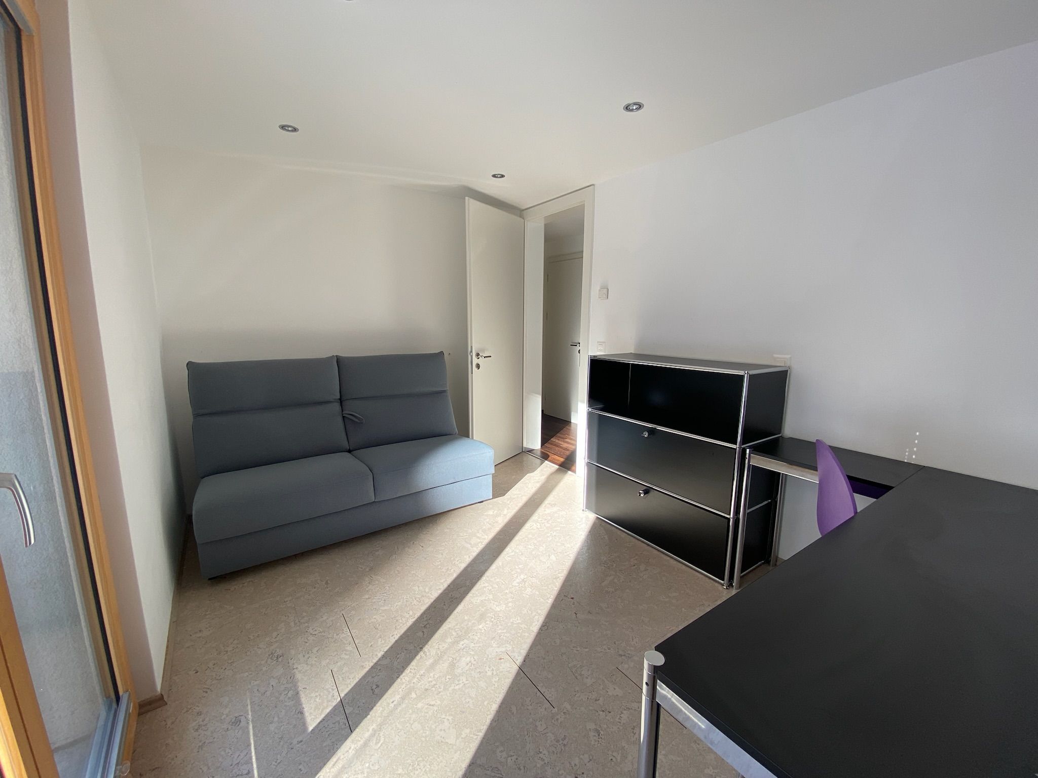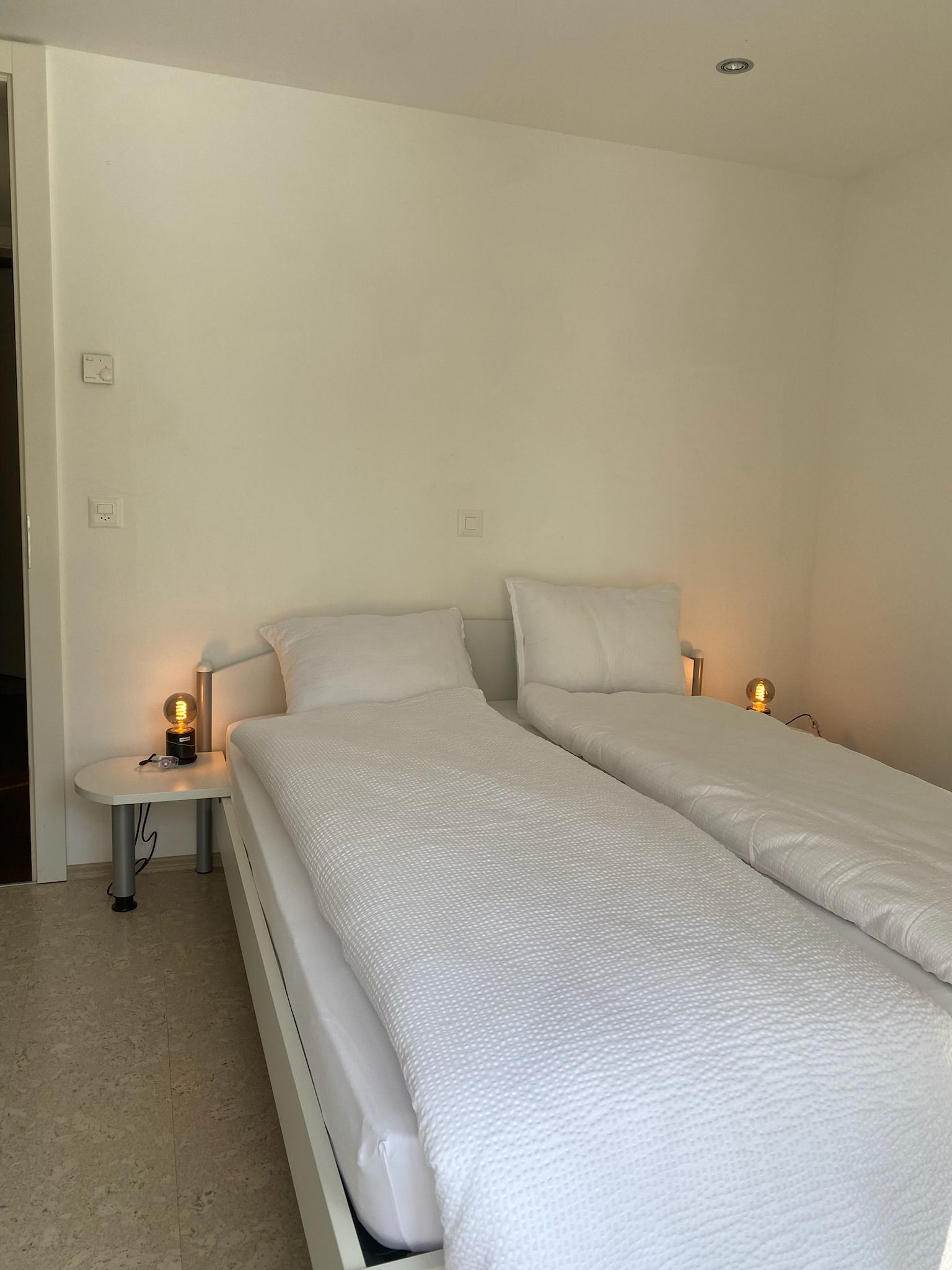 Im untersten Stock gibt es ein Zimmer mit Doppelbett, Kleiderschrank und Zugang nach draussen. Auch dieser Stock besitzt ein Badezimmer. Ausserdem befindet sich hier ein Büro mit einem ausziehbarem Schlafsofa, ebenfalls mit Zugang nach draussen. Zudem befindet sich die Waschküche auf diesem Stock.