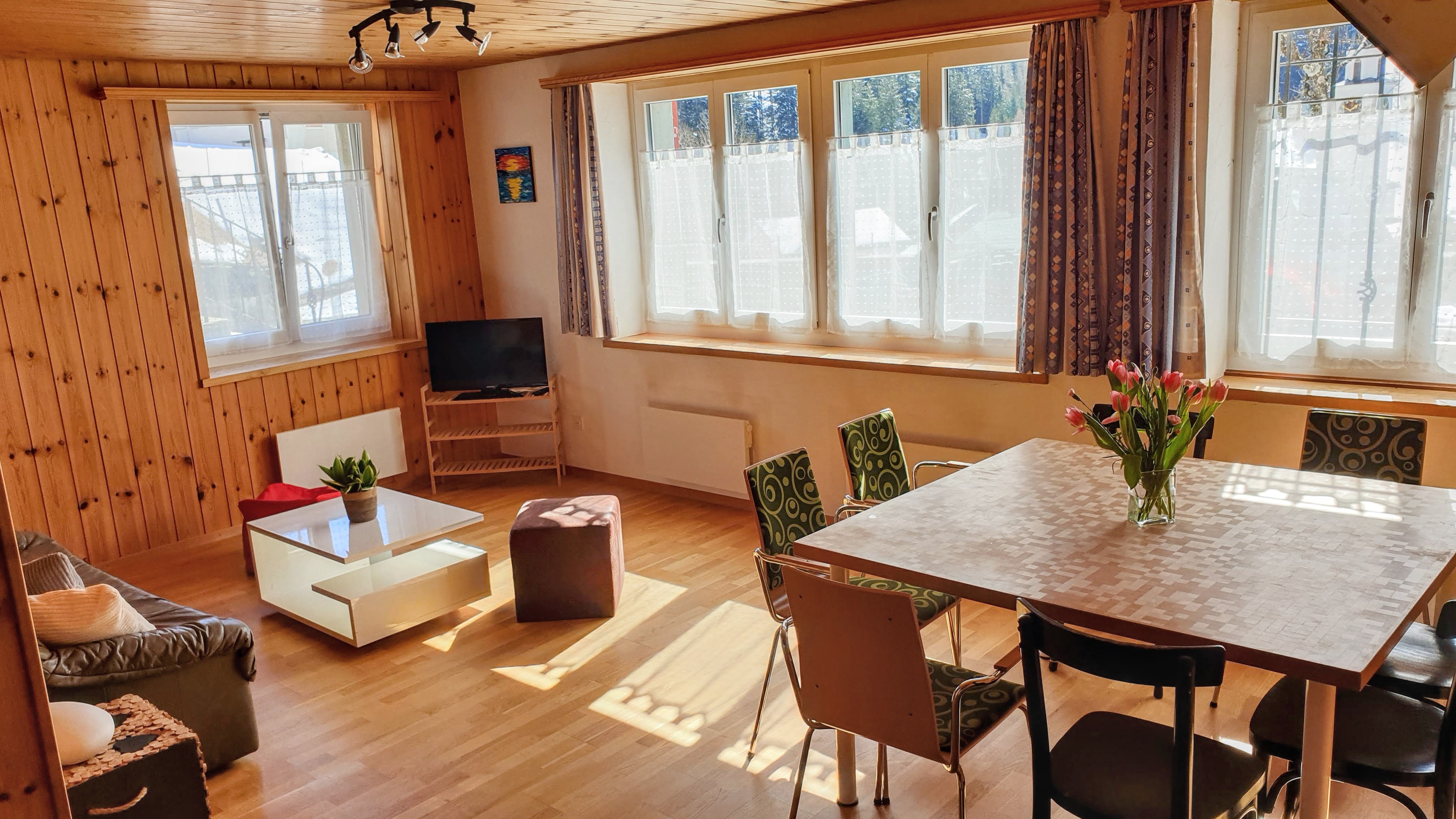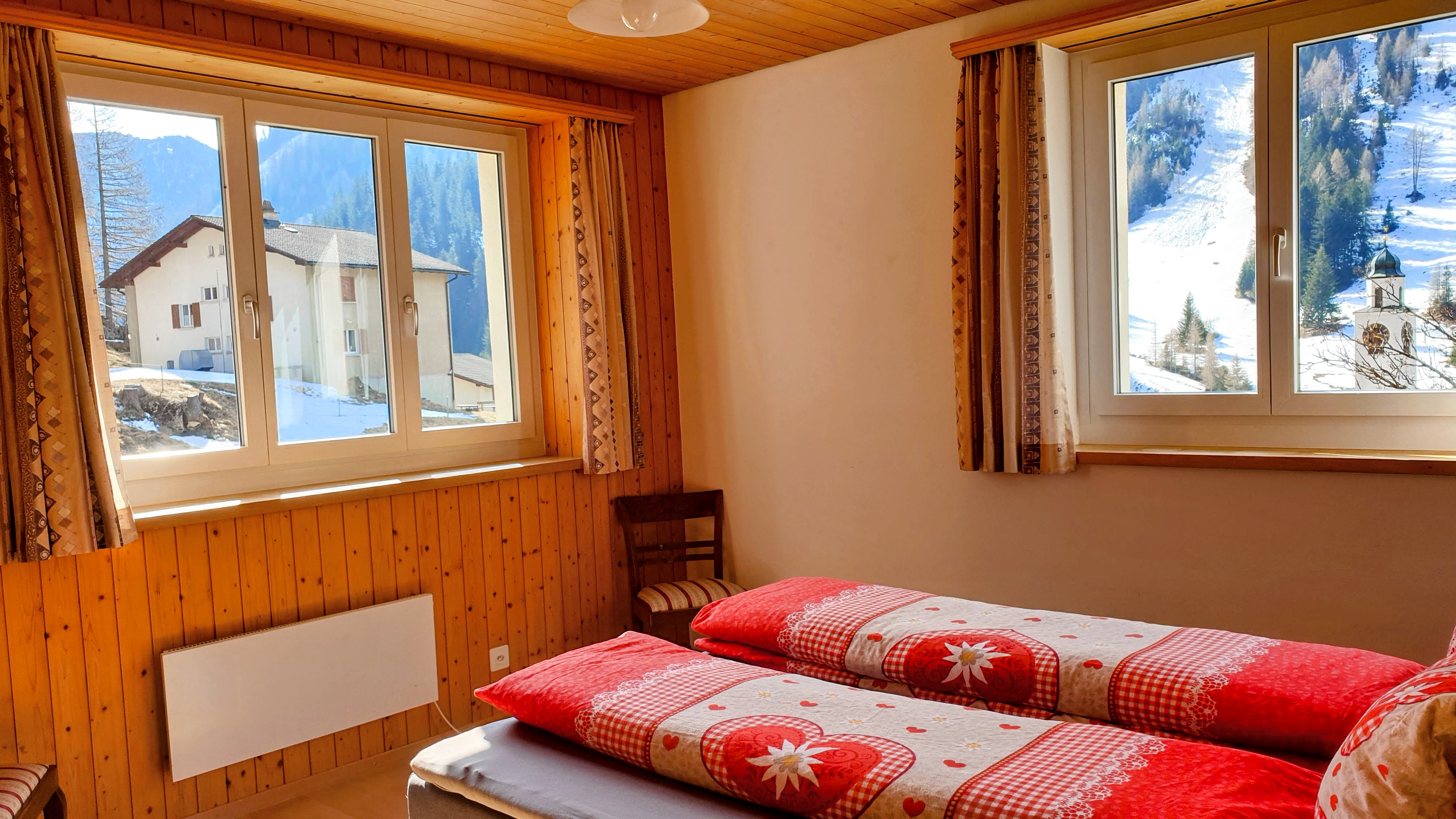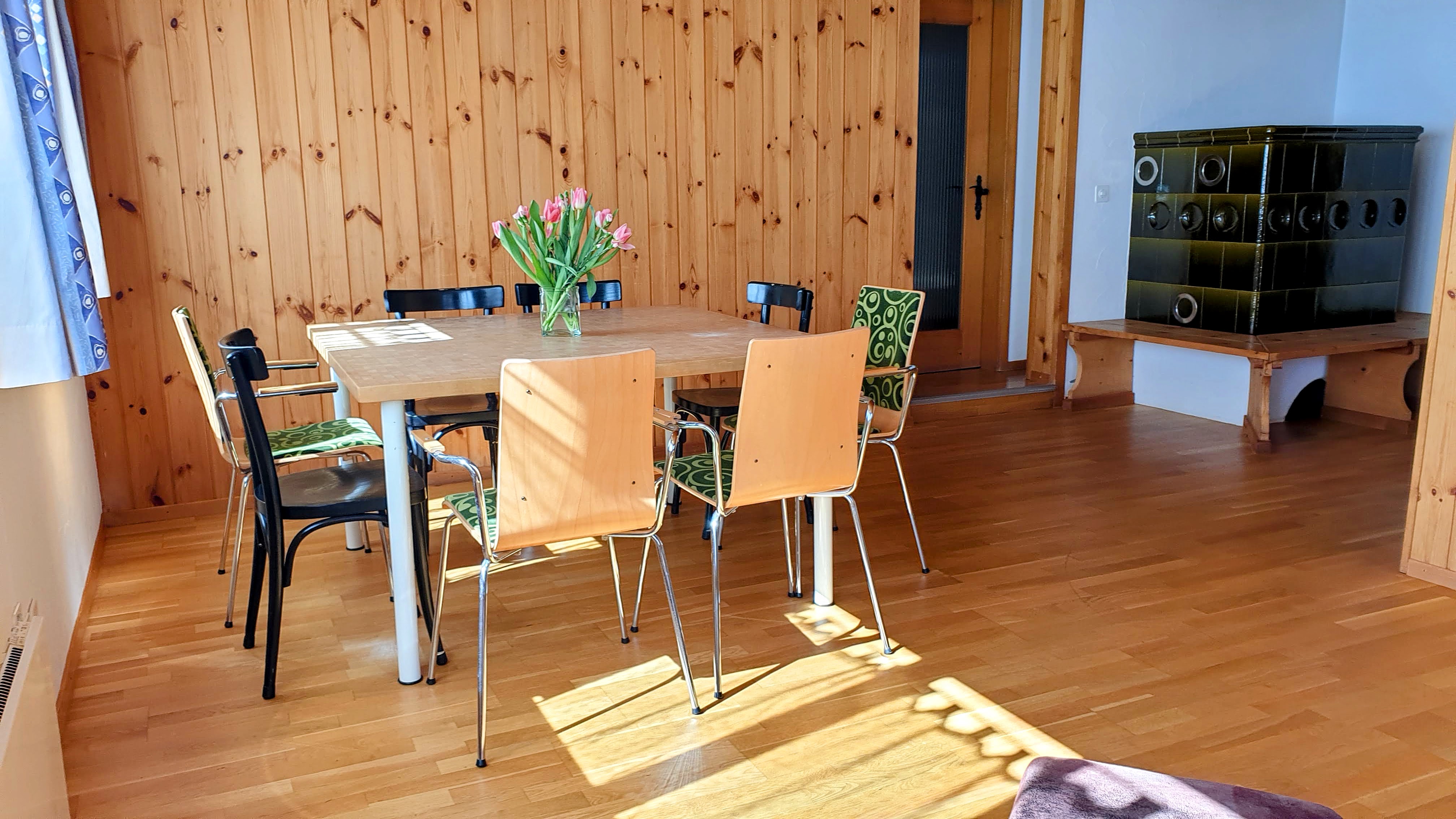 Sonnige und grosszügige doppelstöckige Ferienwohnung. Sie bietet genug Platz für Familien bis 10 Personen. Genauso optimal ist die Wohnung auch für Gruppen. Der Ess-Wohnbereich und Küche befinden sich im Erdgeschoss. Die Küche ist komplett eingerichtet. (Kaffeemaschine, Abwaschmaschine, Toaster, Mikrowelle, Wäschemaschine). Die Schlafzimmer (2x Doppel, 1x Einzel, 1x Einzel mit Verbindungstüre & 1x Vierbett) befinden sich im ersten Obergeschoss. Insgesamt gibt es zwei Badezimmer. Terrasse mit schöner Aussicht auf Innerferrera, auch ein Grill stehet zur Verfügung. Die Ferienwohnung ist in einer Sackgasse ohne Autoverkehr.