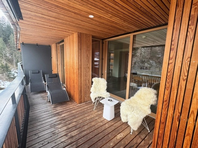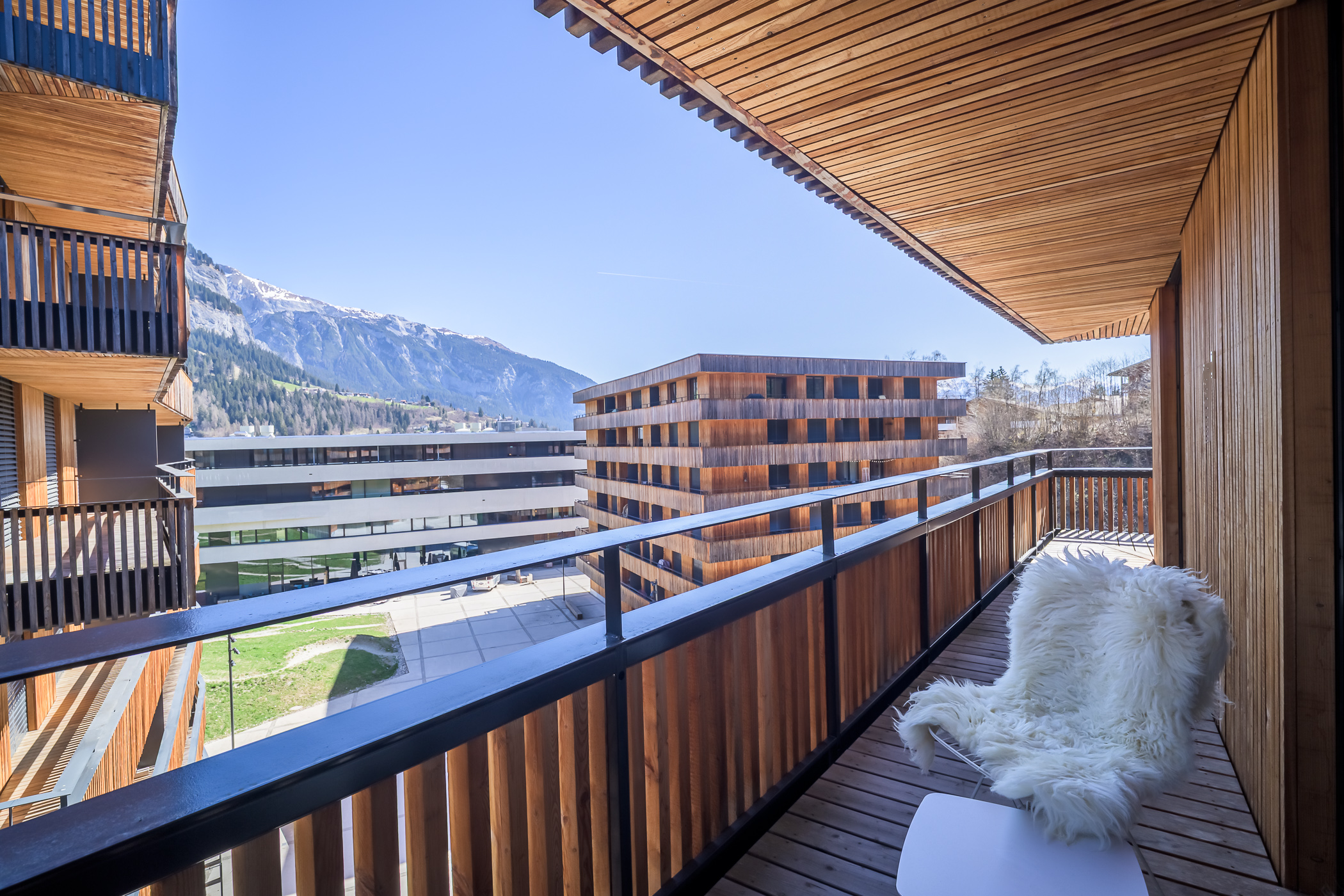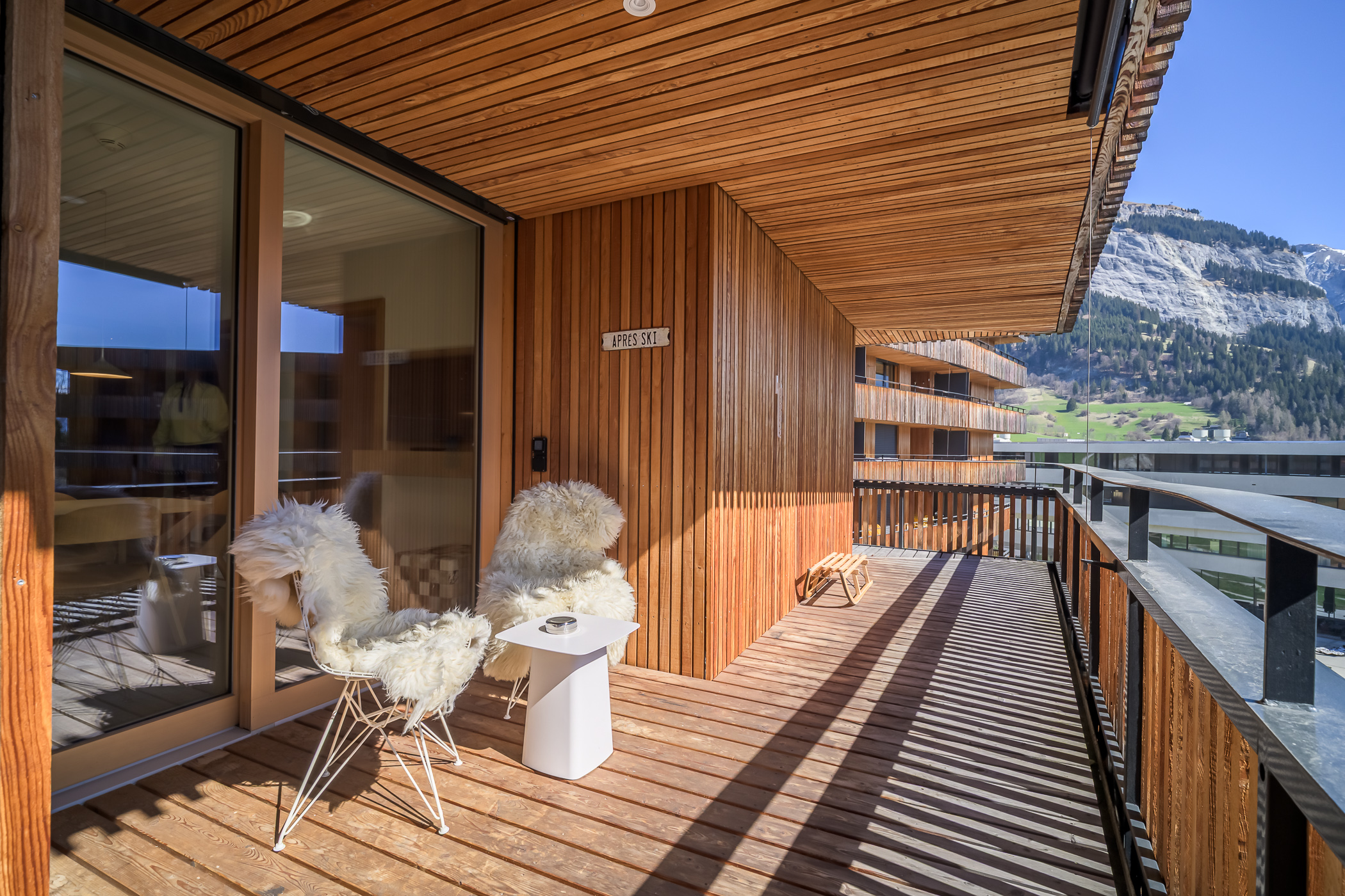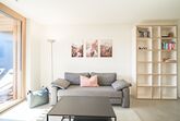 Helle, moderne 3.5 Zimmerwohnung, 59m2 für 4 gäste, plus 28m2 Terrasse im sweitobersten Stock (Südsicht) eines Mehrfamilienhauses direkt an der Talstation Flims Dorf