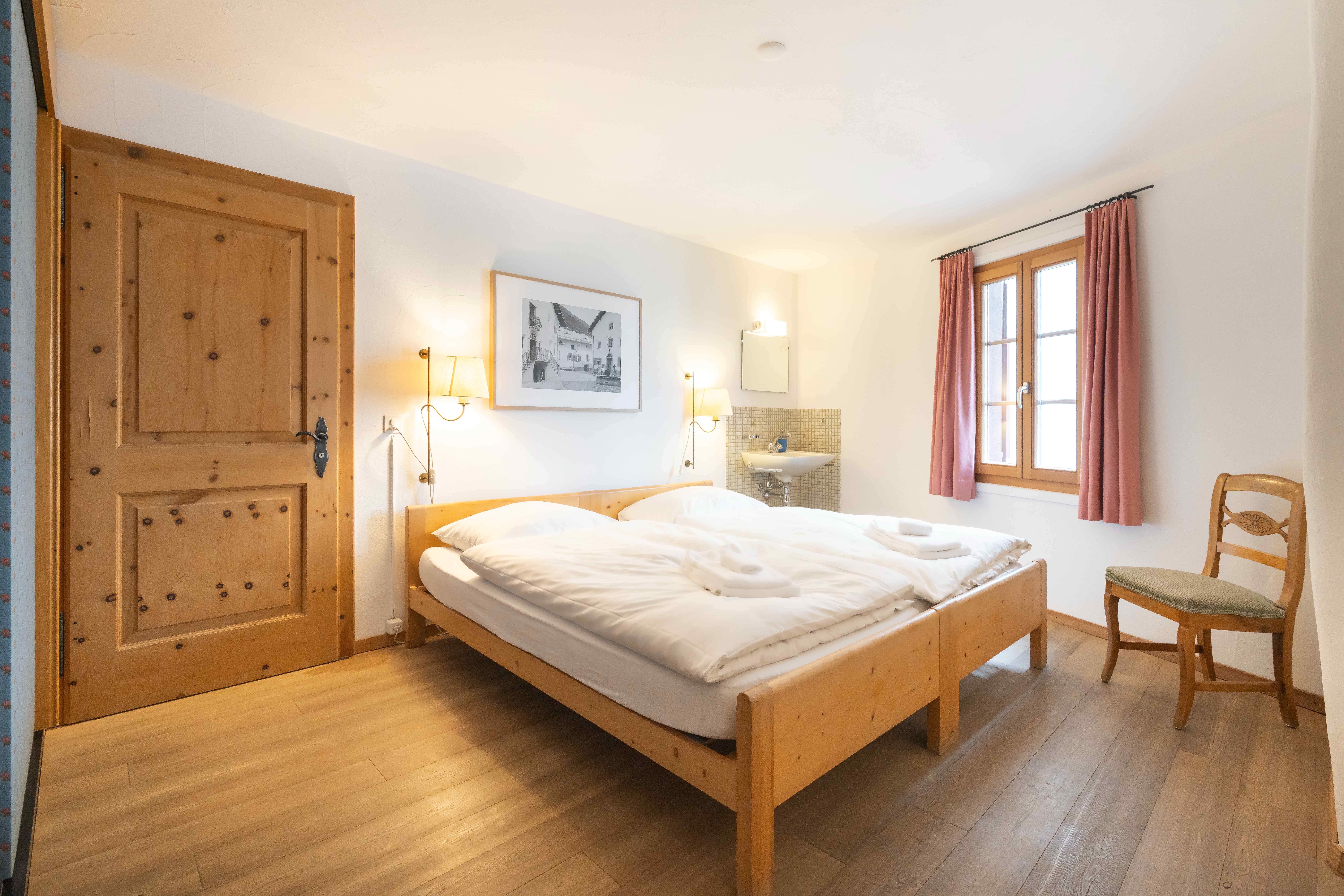 Gemütliche Schlafzimmer mit hochwertigen Betten und Arvenholzschränken