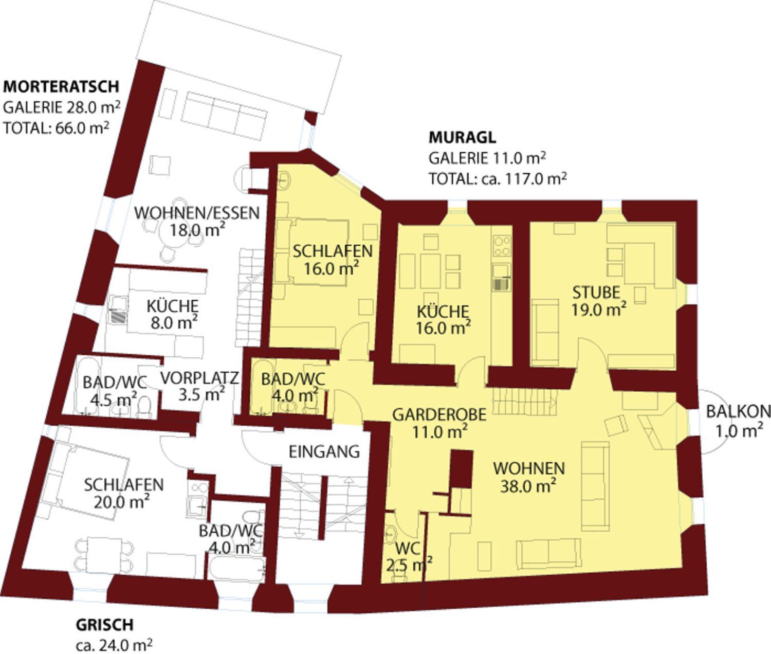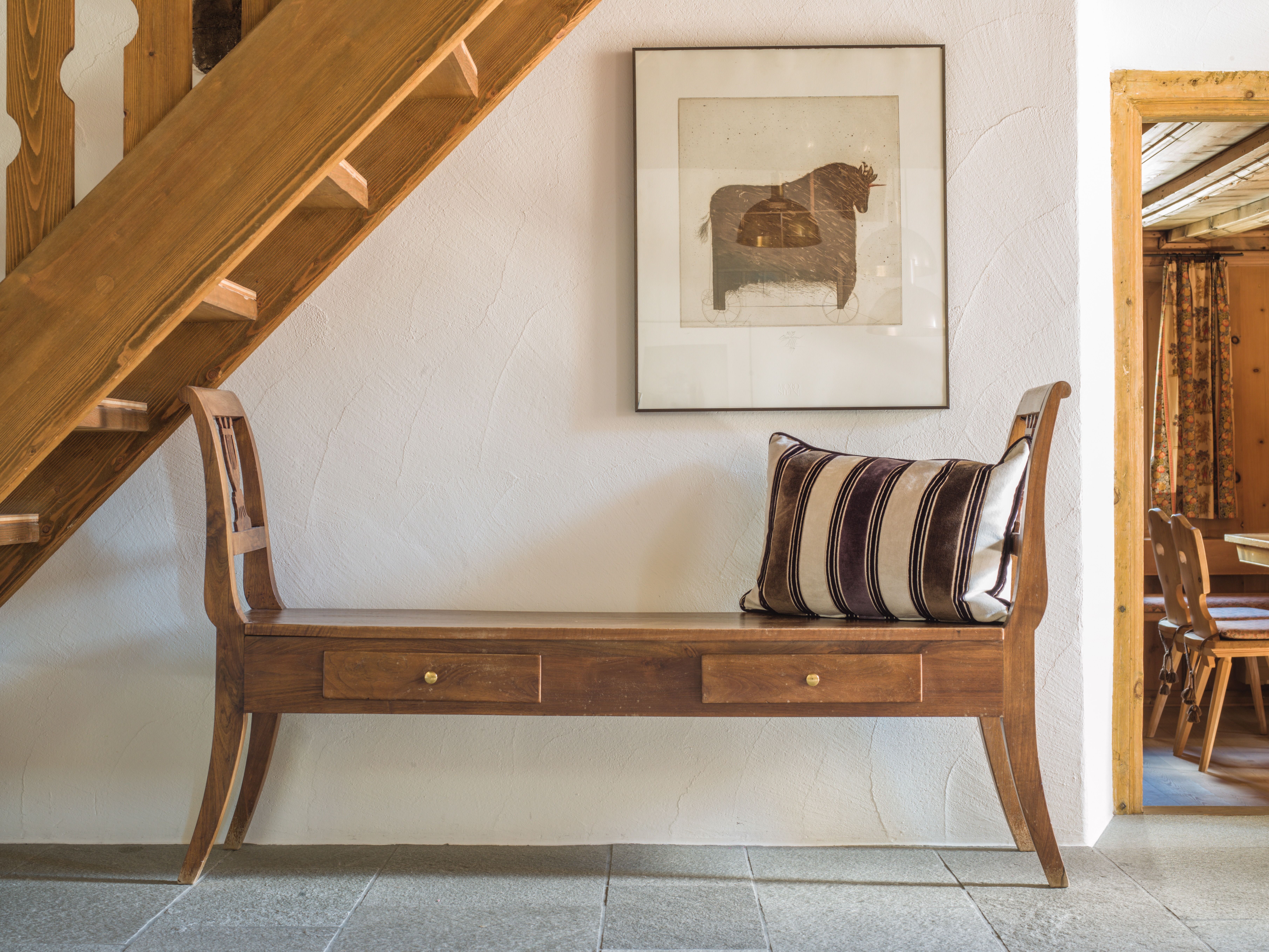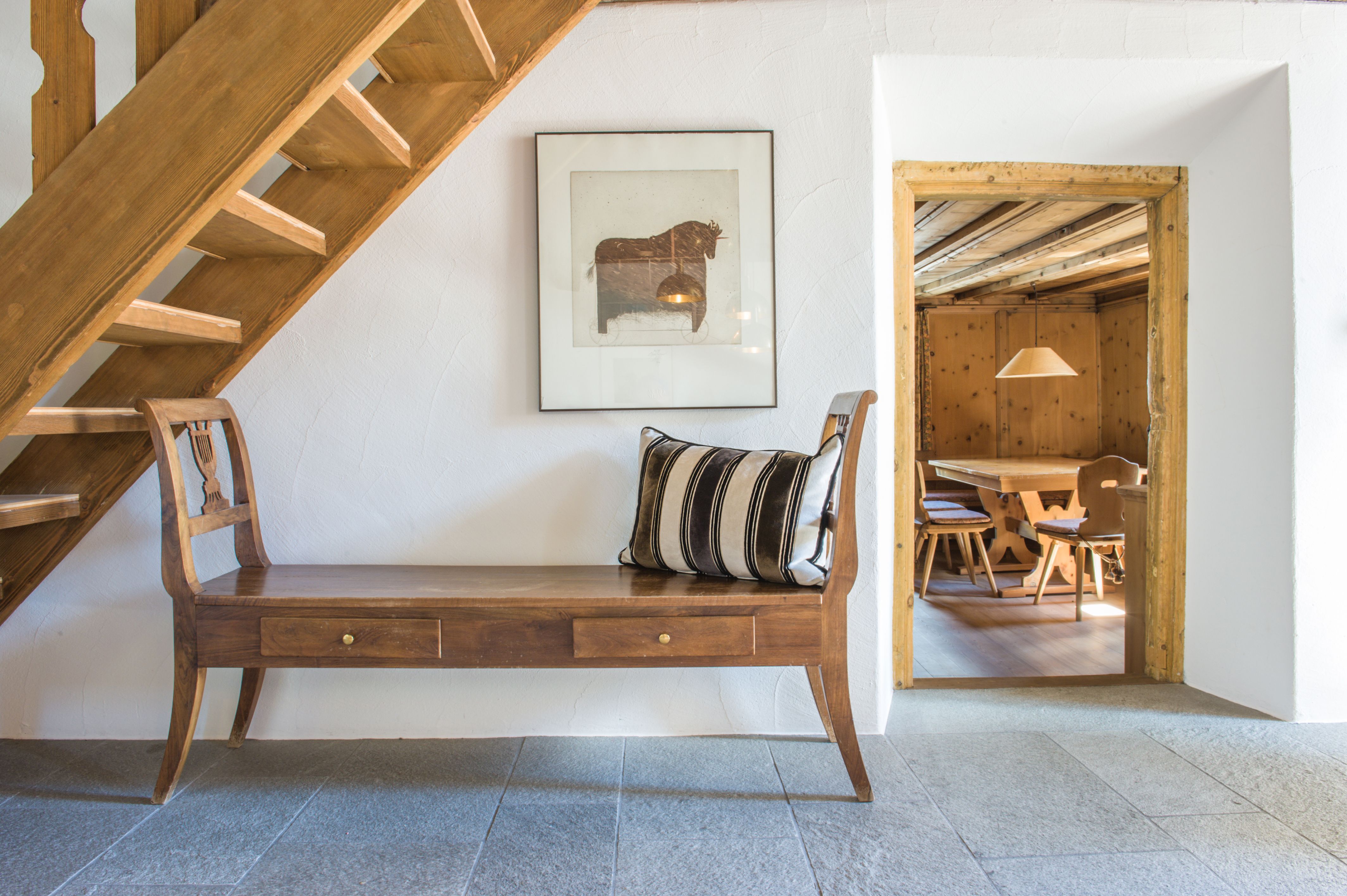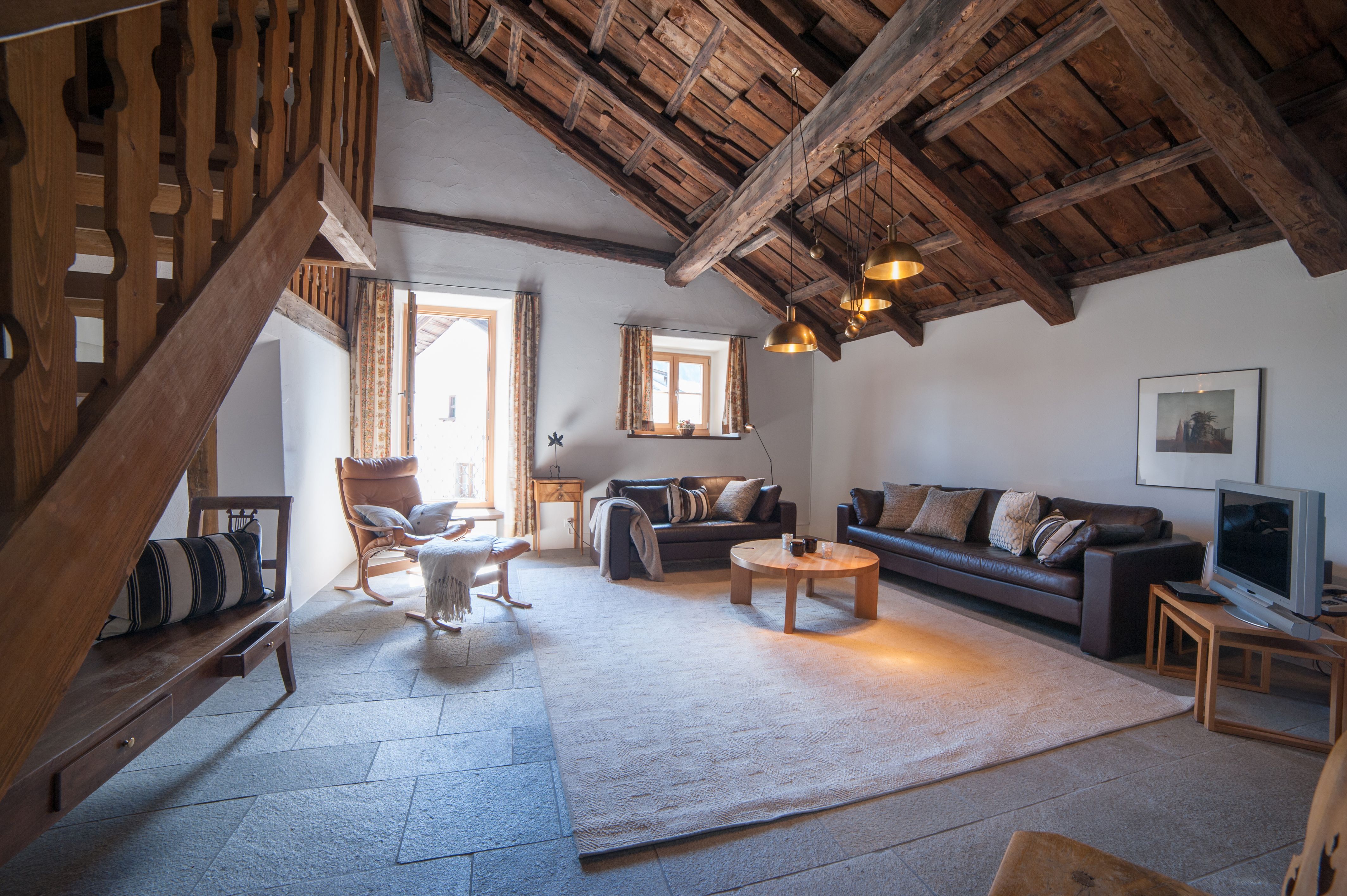 Die Innenausstattung spiegelt die perfekte Symbiose aus traditionellem Engadinerstil und modernem Komfort wider. Ihre 117 m² sind geprägt von Natursteinböden und edlem Parkett mit Bodenheizung, einer hochwertigen Wohnküche voll ausgestattet mit allen modernen Annehmlichkeiten sowie ein großzügiges Wohnzimmer mit einem atemberaubenden Cheminée. Die offene Galerie unter dem Dach, ein geräumiges Schlafzimmer mit separatem Lavabo, ein edles Badezimmer und ein zusätzliches separates WC vervollständigen das luxuriöse Wohnambiente.