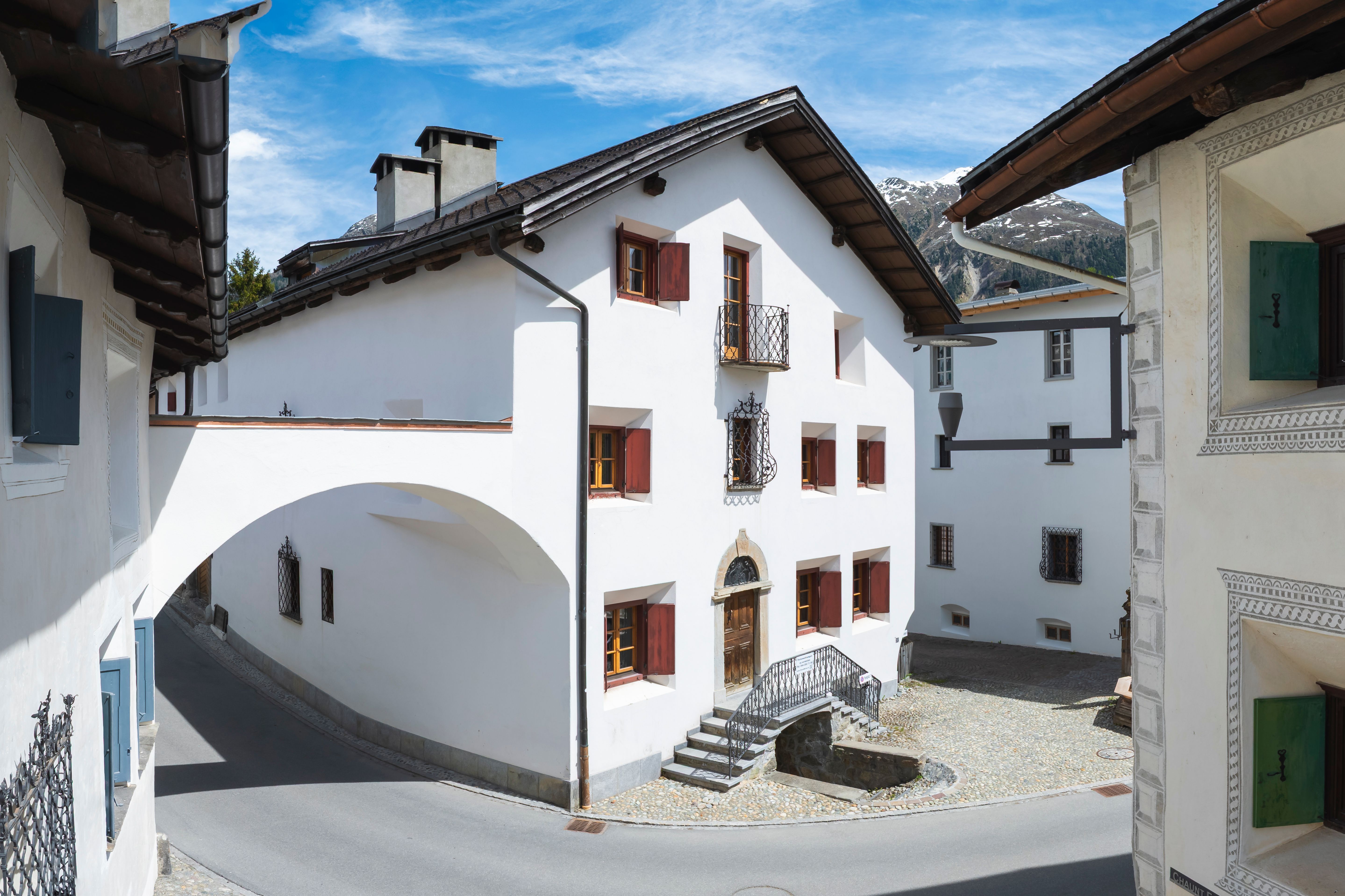 Die Chesa Michel liegt mitten im malerischen Dorfkern von Bever, einem der schönsten und authentischsten Orte des Oberengadins. Das auf 1714 m.ü.M. gelegene Bergdorf ist umgeben von den majestätischen Gipfeln der Albula-Gruppe im Nordwesten und der imposanten Bernina-Gruppe mit ihren über 4000 Meter hohen Bergen im Südosten.