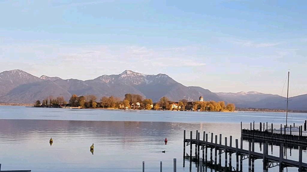 gemütliches Appartement ,Dusche/WC,.Kochnische,sonniger Balkon mit See und Bergblick,100m zum Chiemsee,Parkplatz am Haus, Fahrradgarage,kleiner Spielplatz,Kinderbett und ühstücksterrasse,Garten am Haus,eigener Badeplatz und Liegewiese ,Bootsverleih(Elekto-Tret und Ruderboote),günstige Herbst und Winterpauschalen ab 7 Nächte.